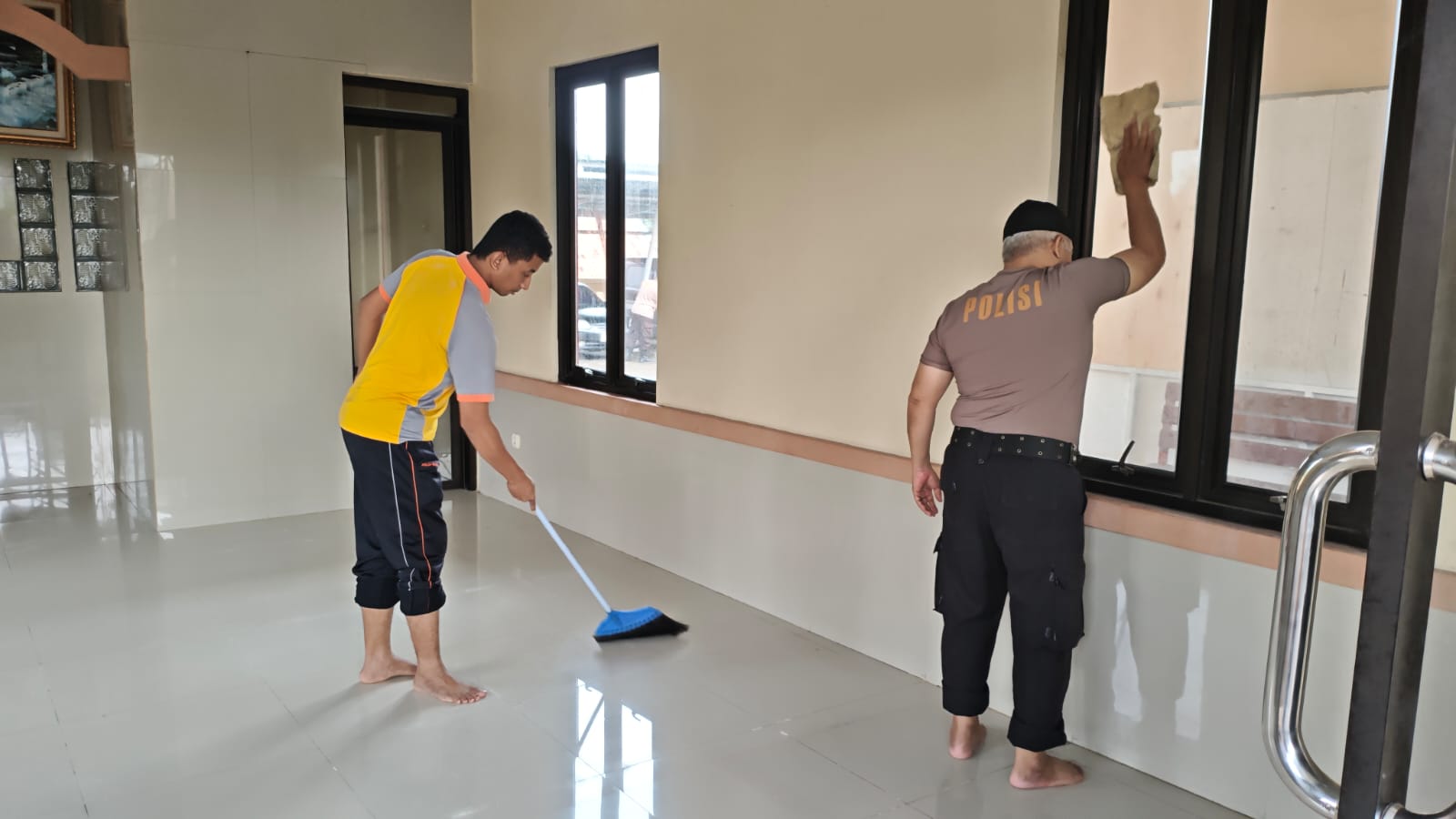 Seluruh Personil Polsek Ciwandan Bersih-bersih Dan Kerja Bakti Mako Polsek Ciwandan.