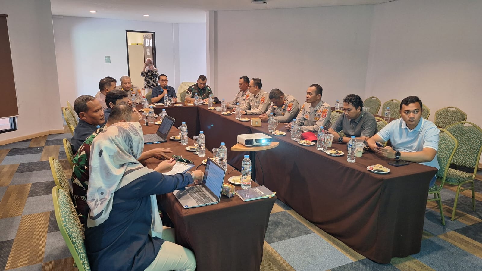 Cilegon - Kapolsek Ciwandan, KOMPOL ANDI SUHERMAN, SH, MM, beserta Panit Lantas Polsek Ciwandan, IPTU DENI MULYANA, menghadiri rapat sosialisasi gate system kawasan industri Cilegon Krakatau Sarana Properti di Ruang Rapat VVIP Birdie Cafe. Kegiatan ini bertujuan untuk meningkatkan kesadaran dan partisipasi masyarakat dalam menjaga keamanan dan ketertiban di kawasan industri, Rabu (01/10/2025).