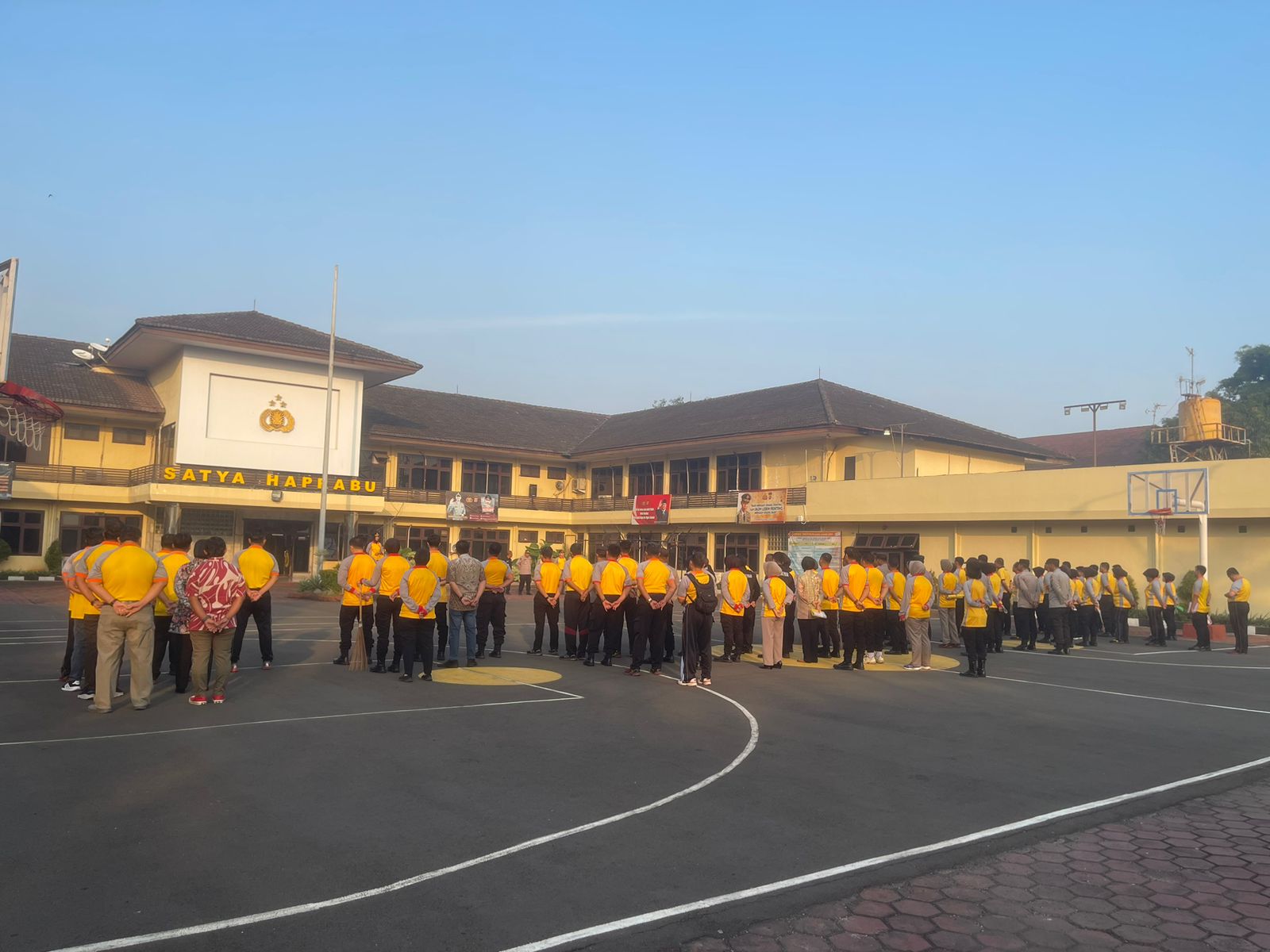 Cilegon, Polres Cilegon ,Polda Banten,  Personil Polres Cilegon Melaksanaan Apel pagi, merupakan kegiatan rutin setiap harinya terkait situasi di wilayah hukum Polres Cilegon Jumat (03/10/2025).