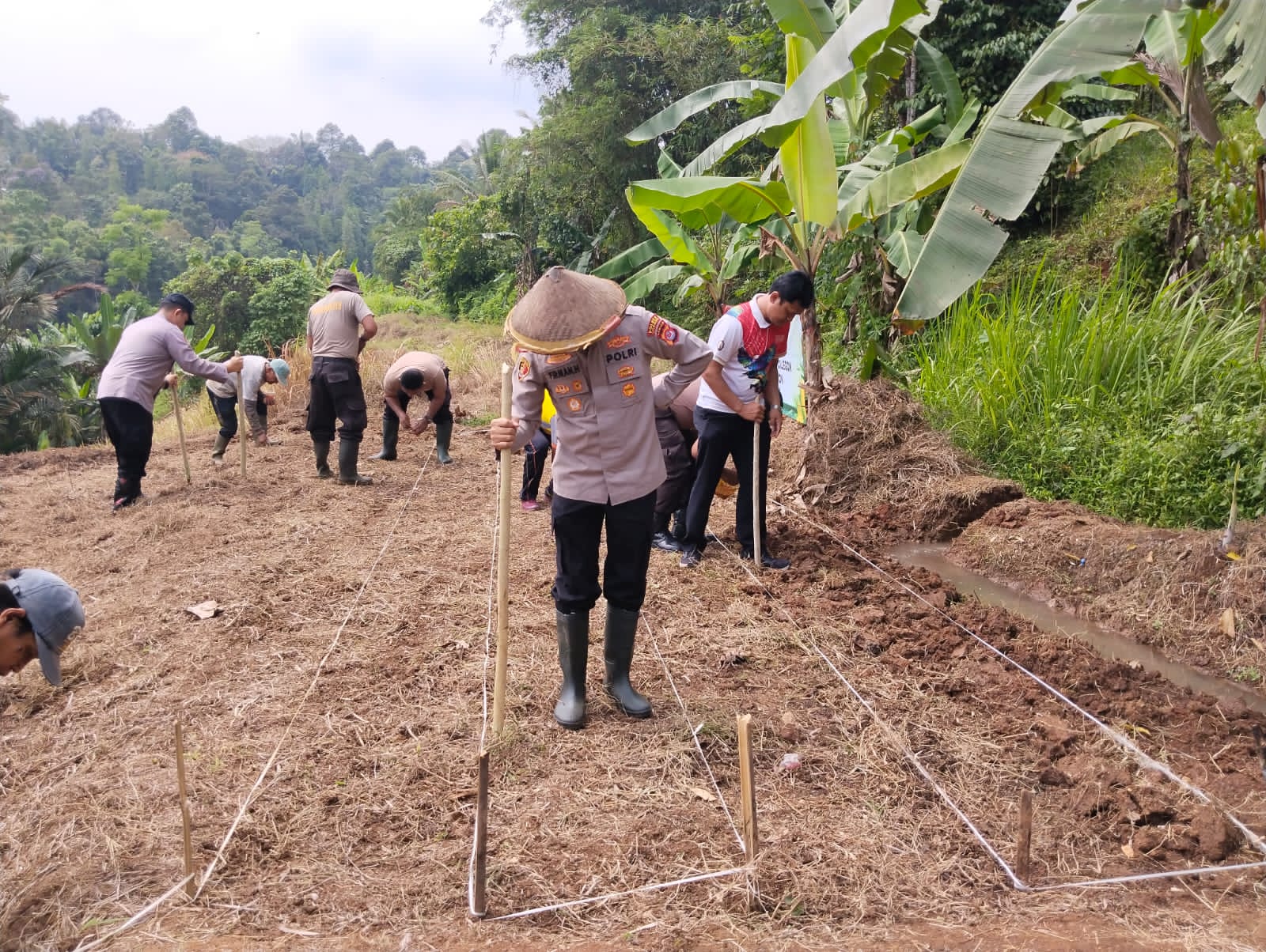 Dilaksanakan Penanaman lahan baru untuk Bibit Jagung Hybrida yang bertempat di lahan jagung milik kelompok tani Bpk. Misra Rt. 04/ Rw.01 Kp. Gunung Ranji Kelurahan Angsana Kecamatan Mancak Kab. Serang Wilkum Polres Cilegon.