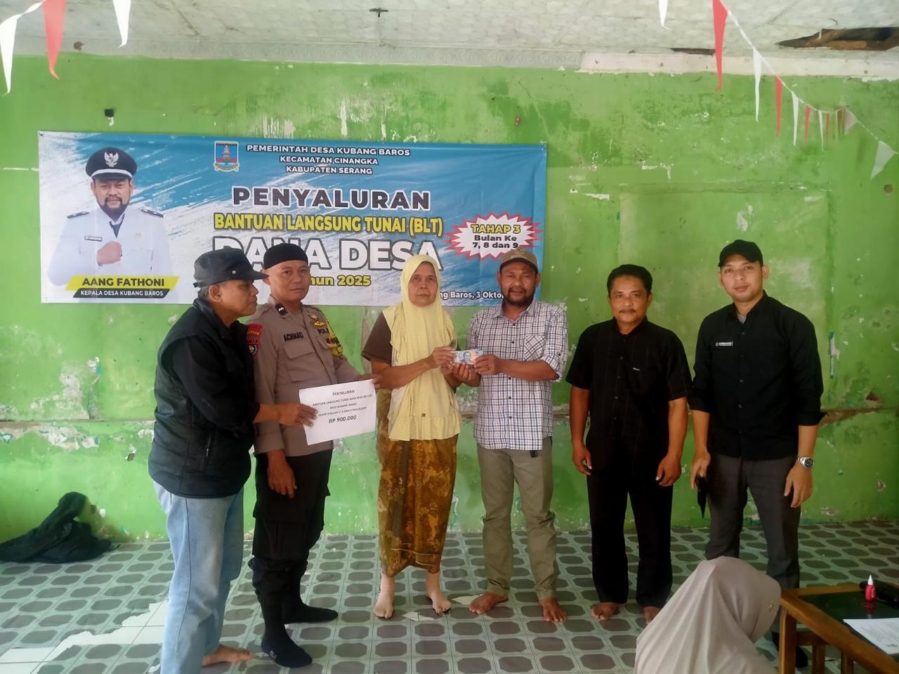 Seperti pada Jumat (03/10) di Desa Kubangbaros dilaksanakan kegiatan penyaluran bantuan BLT-DD Tahap 7,8dan 9 periode anggaran tahun 2025 yang mengambil tempat di Kantor Desa Kubangbaros dan bagia yang sakit di antarkan ke rumah , untuk itu Aipda Achmad sebagai Bhabinkamtibmas Desa Kubangbaros langsung bergerak melakukan bantuan dan pengawalan, masyarakat yang menerima sebagai penerima bantuan berupa uang tunai sebesar @Rp 900.000,- (sembilan ratus ribu rupiah).