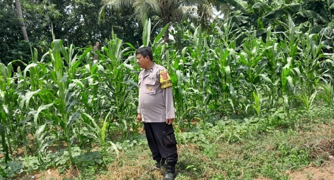 Mendukung Program Ketahanan Pangan Pemerintah Bhabinkamtibmas Monitoring Tanaman Jagung di wilayah