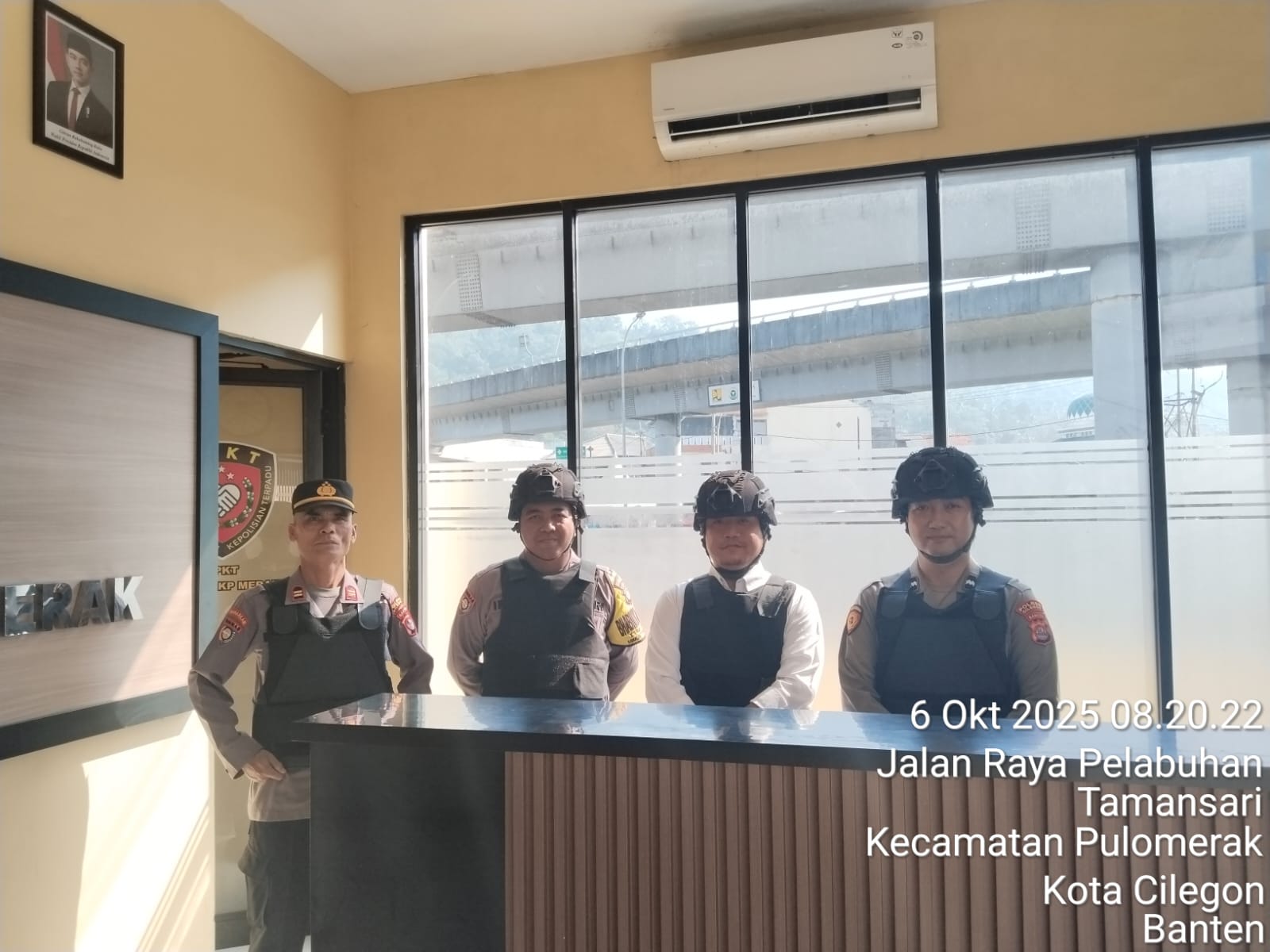 Cilegon - Personel piket jaga Polsek Kskp Merak Polres Cilgon Polda Banten melaksanakan siaga 1 Polsek pelaksanaan Sispam Mako oleh piket siaga dipimpin oleh Kspk Polsek Kskp Merak Polres Cilegon Polda Banten, Senin (06/10/2025).