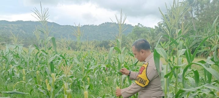 Personil Bhabinkamtibmas Aipda Anton sudrajat bersama bersama warga binaanya Melaksanakan Cek ke Lahan Jagung Dalam Rangka Mendukung Program Ketahanan Pangan Pemerintah dengan Cek Tanaman jagung di Link. Karang Tengah