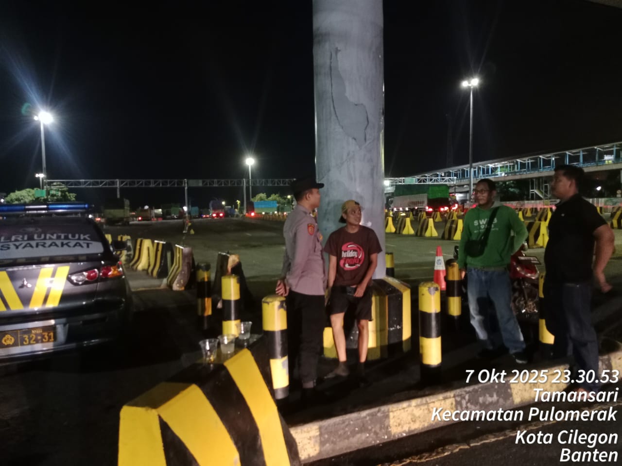 Cilegon - Personil Polsek Kskp Merak Polres Cilegon melaksanakan patroli di kawasan pelabuhan merak memberikan rasa aman dan damai, Rabu (08/10/2025)
