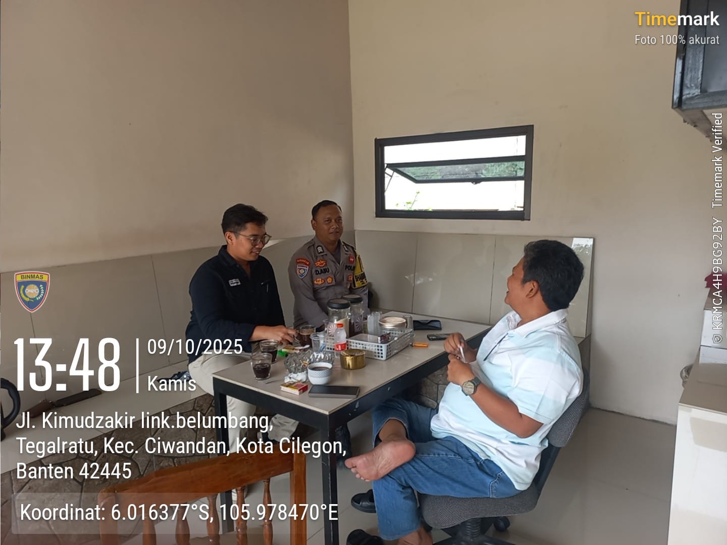 Cilegon - Kali ini Bhabinkamtibmas Polsek Ciwandan Polres Cilegon Polda Banten Bersilaturahmi Anjangsana warga binaanya Dan Tokoh Masyarakat merupakan salah satu tugas rutin yakni dengan melaksanakan Anjangsana/kunjungan kepada Tokoh masyarakat untuk menjalin silaturahmi yang lebih erat dan menyampaikan pesan-pesan kamtibmas serta mencari informasi yang berkembang di masyarakat agar tercipta situasi kamtibmas yang aman dan kondusif,Kamis (09/10/2025).