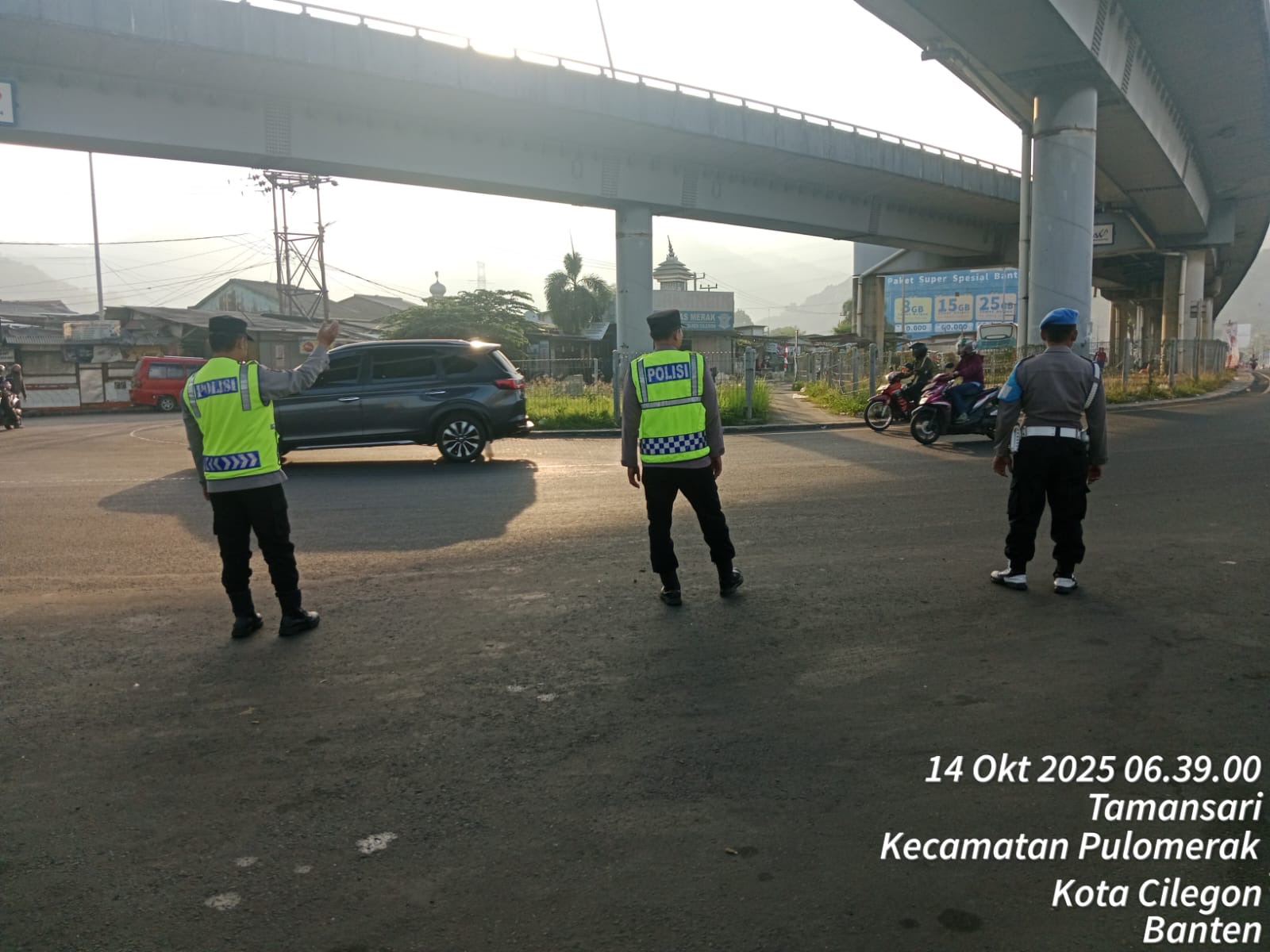 Cilegon - Dalam rangka peningkatan pelayanan prima kepada masyarakat, Kskp Merak Polres Cilegon Polda Banten melaksanakan pengaturan antrian R4 yang akan masuk ke Kapal Ferry di Pelabuhan Merak, Selasa (14/10/2025).