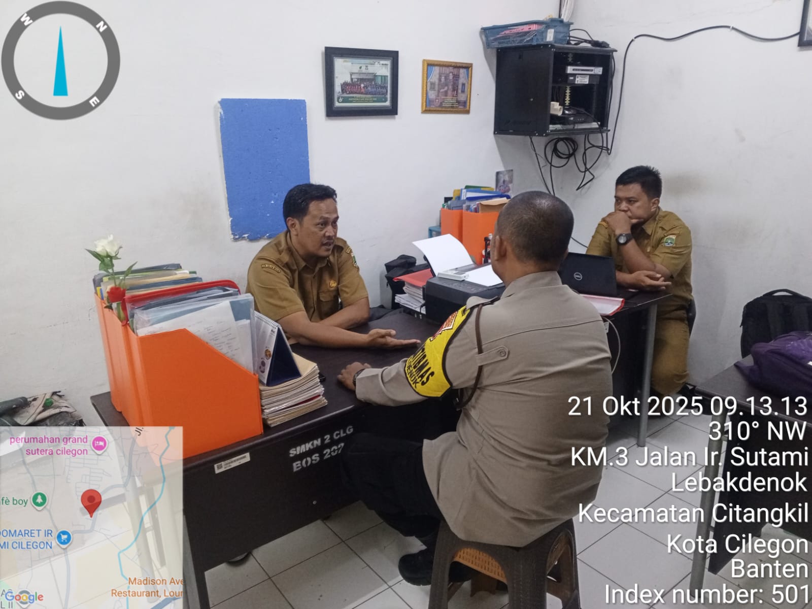 Cilegon - Bhabinkamtibmas Polsek Ciwandan Polres Cilegon Polda Banten Sampaikan Pesan-Pesan Kamtibmas Kepada Dewan Guru, Selasa (21/10/2025).