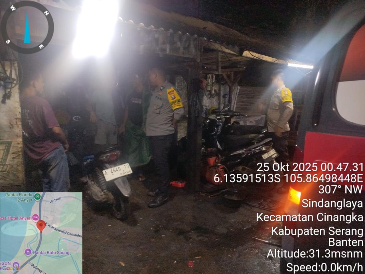 *Cilegon* – Dalam Rangka Pencegahan Kejahatan Jalanan dan Memelihara situasi keamanan dan menjaga serta memberikan rasa aman dan nyaman di masyarakat,Salah satu upaya untuk mewujudkan hal tersebut sebagaimana yang dilakukan oleh Personil Polsek Cinangka Polres Cilegon Polda Banten melaksanakan giat patroli blue light malam hari hingga menjelang pagi, Sabtu (25/10/2025).