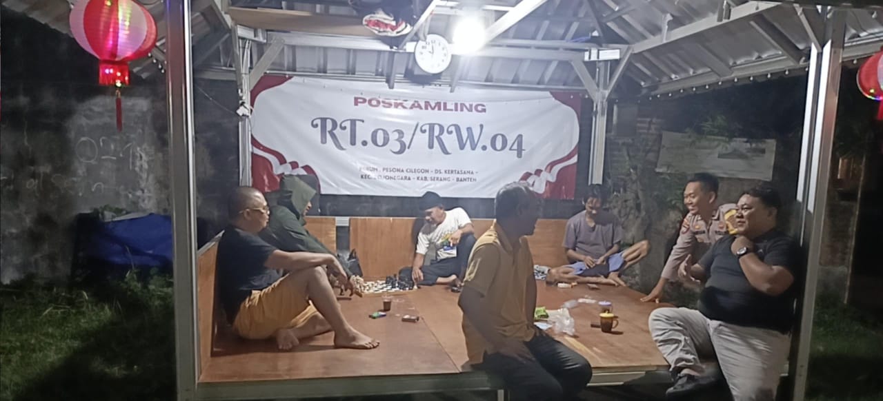 Cilegon ~ Dalam upaya menjaga situasi kamtibmas tetap kondusif,Bhabinkamtibmas Polsek Bojonegara Polres Cilegon Polda Banten,  Bripka Zaenal Bersama Brigadir chairuman melaksanakan kegiatan kontrol dan pemantauan ronda malam,di sejumlah pos ronda warga yang berada di wilayah binaannya, Minggu (26/10/2025).