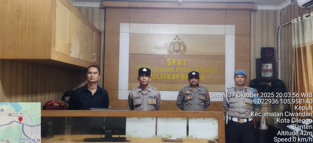 Cilegon. Personel piket jaga Polsek Kskp Banten Polres Cilegon Polda Banten melaksanakan Pengamanan Mako Polsek, Senin (27/10).