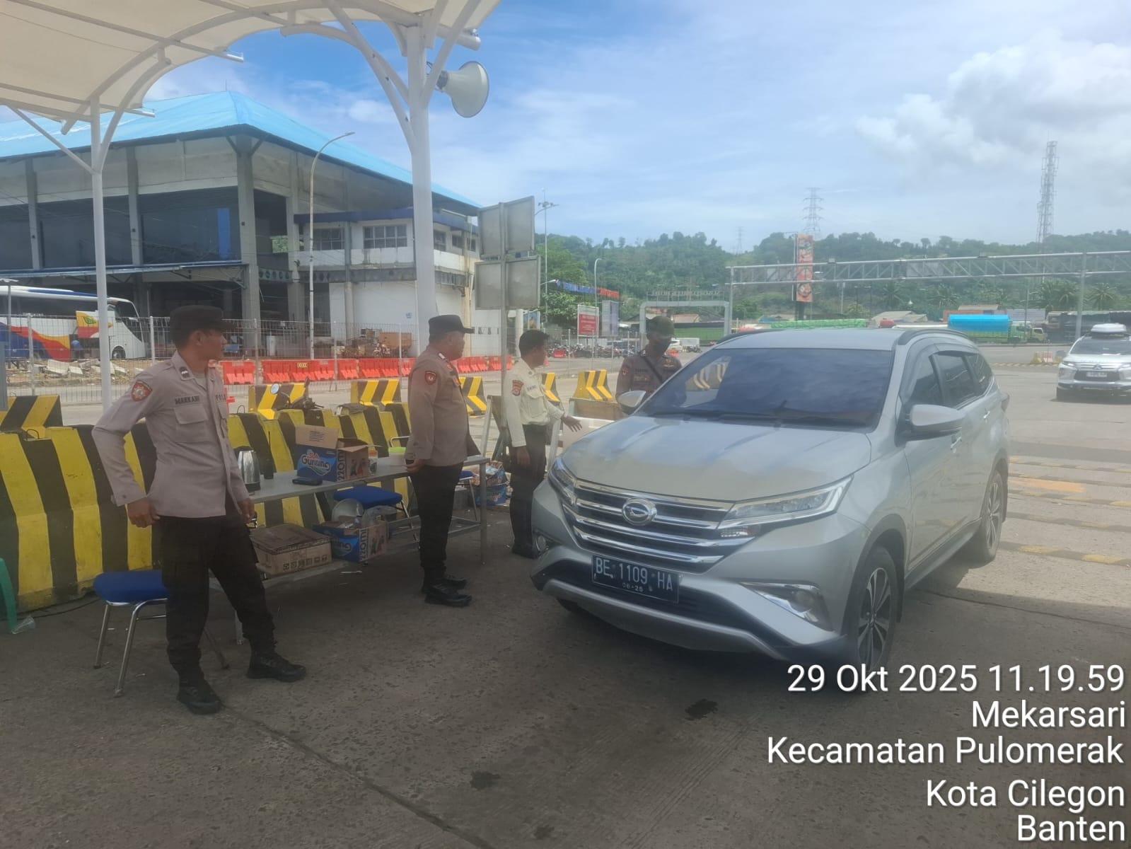 Cilegon - Personel Polsek Kskp Merak Polres Cilegon Polda Banten melaksanakan sambang dan patroli kawasan pelabuhan merak dalam rangka menjaga Harkamtibmas di Kawasan Pelabuhan Merak, Rabu (29/10/2025).