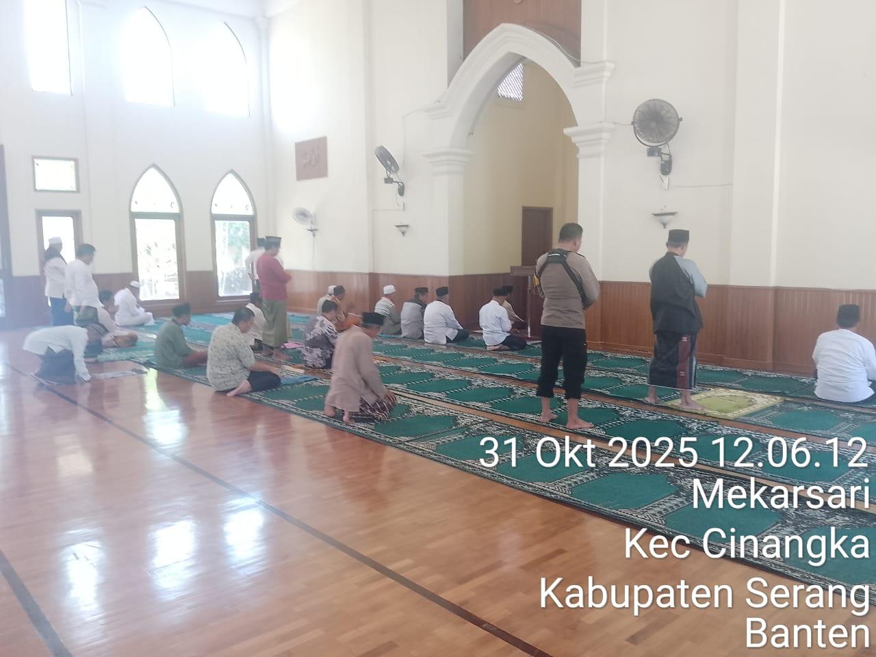 *POLRES CILEGON* - Kapolsek Cinangka Polres Cilegon Polda Banten dan Jajaran melaksanakan giat Juma't keliling dalam rangka silaturahmi menjalin kemitaraan dan menjaga Harkamtibmas di Desa Binaannya sebagai bentuk mendukung Program Quick Wins Presisi Polri, Jumat (31/10/2025).