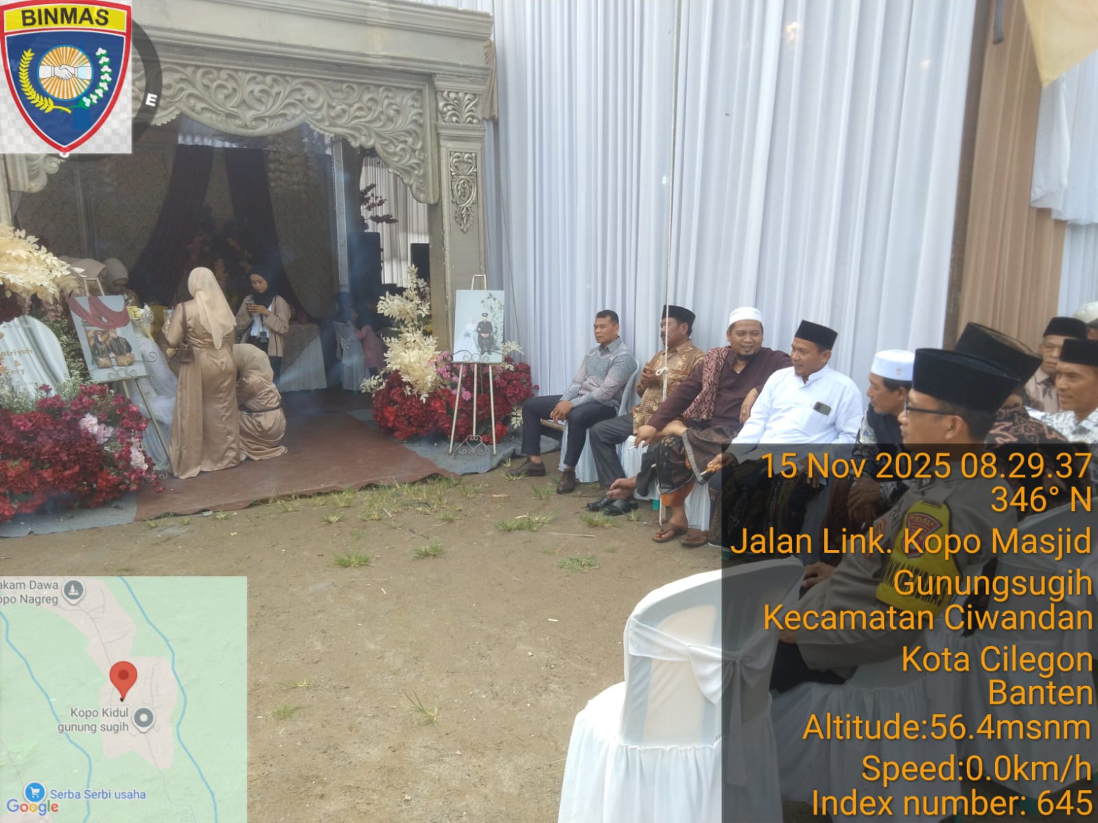 Cilegon - Bhabinkamtibmas Polsek Ciwandan Polres Cilegon Polda Banten melaksanakan Kegiatan Kondangan/Undangan ini bertujuan untuk memastikan acara berlangsung dengan aman dan tertib, serta memberikan rasa aman kepada warga yang menghadiri resepsi pernikahan tersebut, Sabtu (15/11/2025).
