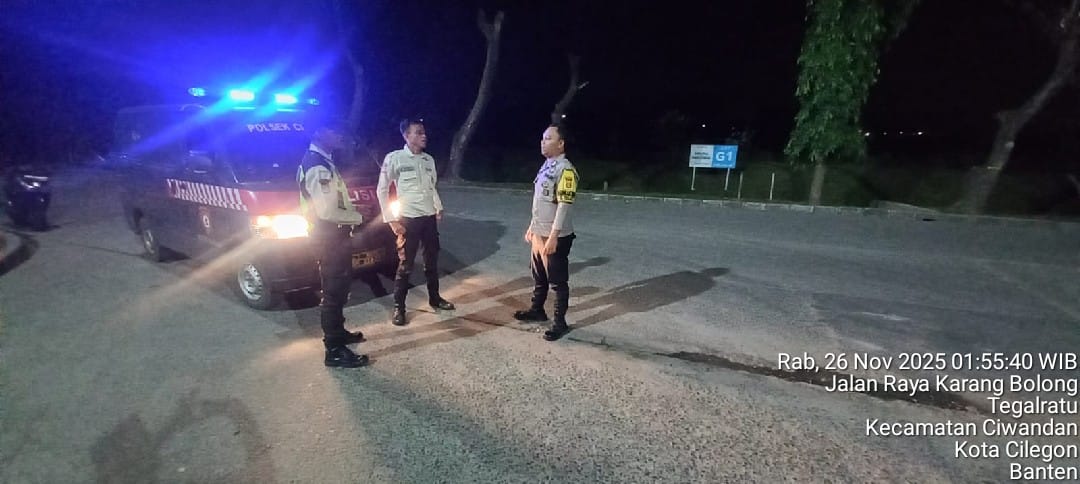 Cilegon – Dalam Rangka Pencegahan Street Crime dan Memelihara situasi keamanan dan ketertiban serta memberikan rasa aman dan nyaman di masyarakat,Salah satu upaya untuk mewujudkan hal tersebut sebagaimana yang dilakukan oleh Personil Polsek Ciwandan Polres Cilegon Polda Banten melaksanakan giat patroli blue light malam hari hingga menjelang pagi, Rabu (26/11/2025).