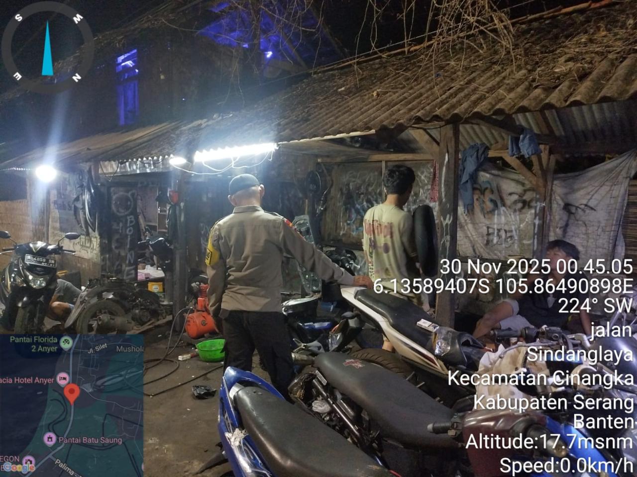 *Polres Cilegon* – Dalam Rangka Pencegahan Kejahatan Jalanan dan Memelihara situasi keamanan dan menjaga serta memberikan rasa aman dan nyaman di masyarakat,Salah satu upaya untuk mewujudkan hal tersebut sebagaimana yang dilakukan oleh Personil Polsek Cinangka Polres Cilegon Polda Banten melaksanakan giat patroli blue light malam hari hingga menjelang pagi, Minggu (30/11/2025).
