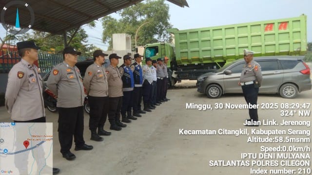 Cilegon - Panit Lantas Polsek Ciwandan IPTU Deni Mulyana Bersama Personil Gabungan Polres Cilegon Polda Banten melaksanakan Kegiatan KRYD Dan Himbauan SK Gubernur Dan monitoring stokfile pasir Didaerah hukum Polsek Ciwandan, Minggu (30/11/2025).