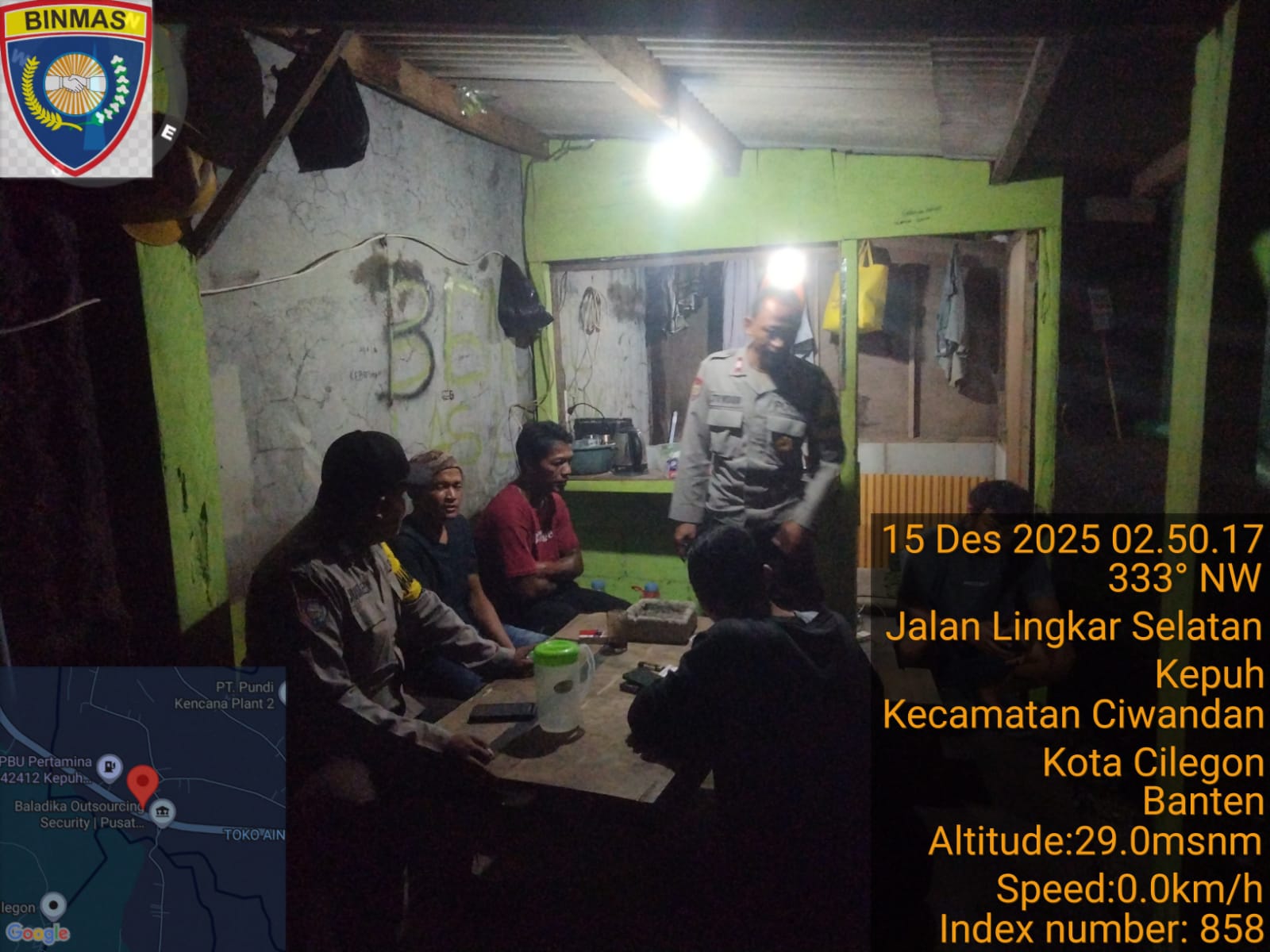 Cilegon - Sebagai wujud kedekatan Polri dengan warga masyarakat, Bhabinkamtibmas Polsek Ciwandan Polres Cilegon Polda dituntut selalu aktif melaksanakan kegiatan sambang Malam ke daerah binaannya untuk dan selalu melekat dengan warga yang menjadi binaanya, Senin (15/12/2025).