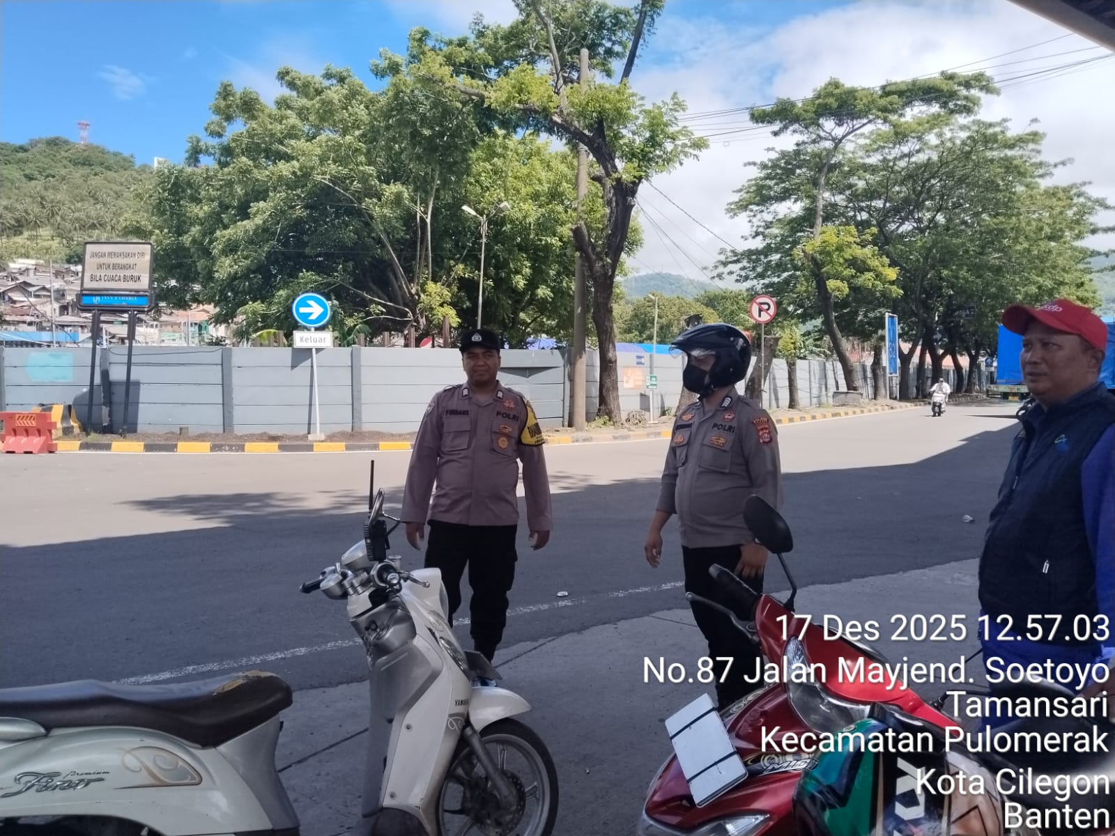 Cilegon - Personel Polsek Kskp Merak Polres Cilegon Polda Banten melaksanakan sambang dan patroli kawasan pelabuhan merak dalam rangka menjaga Harkamtibmas di Kawasan Pelabuhan Merak, Kamis (18/12/2025).