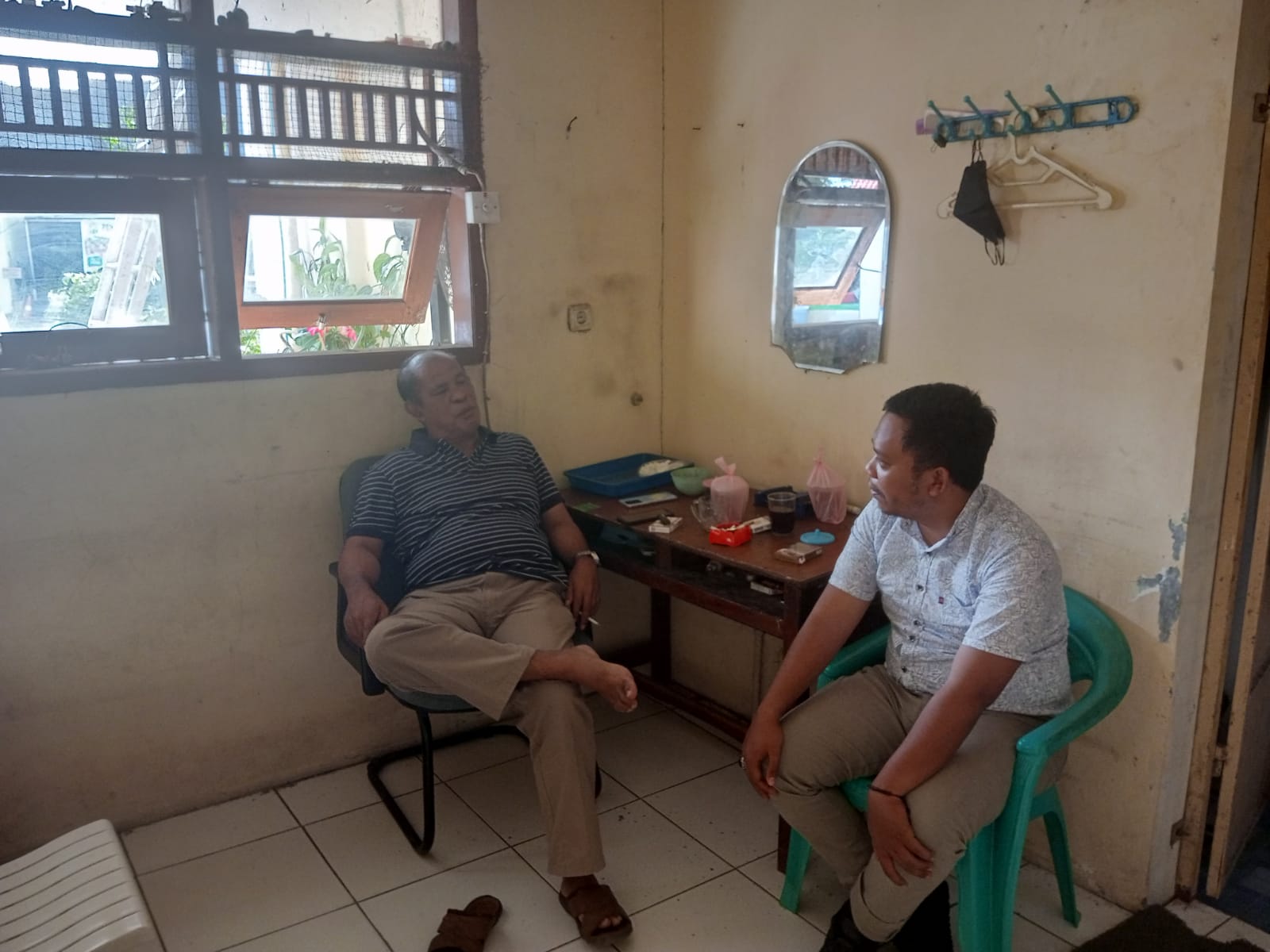 Personil sat intelkam melakukan koordinasi dengan tokoh masyarakat kec. Bojonegara kabupaten serang.