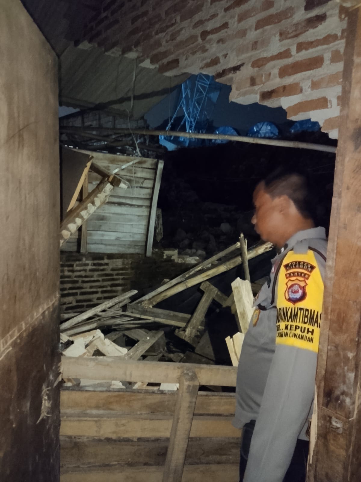 Cilegon - Bhabinkamtibmas, Babinsa Kel. Kepuh, Ketua LSM Ampuh, dan Lurah Kepuh melakukan pengecekan tembok belakang rumah warga dan gubung usaha di Link. Rombongan RT. 01/01 Kel. Kepuh, Ciwandan, Cilegon. Tembok rumah roboh tertimpa pondasi PT. KENERTEK POWER SISTEM pasca banjir pada Senin (05/01/2026).