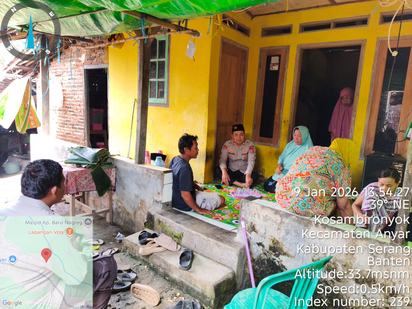 Kapolsek Anyar Polres Cilegon Polda Banten, dan Bhabinkamtibmas selaku pengemban tugas Polri utamanya fungsi Pembinaan (Bhabinkamtibmas) Desa melakukan sambang Duka kepada salah satu warga binaan yang meninggal dunia. Jum't (09/01).