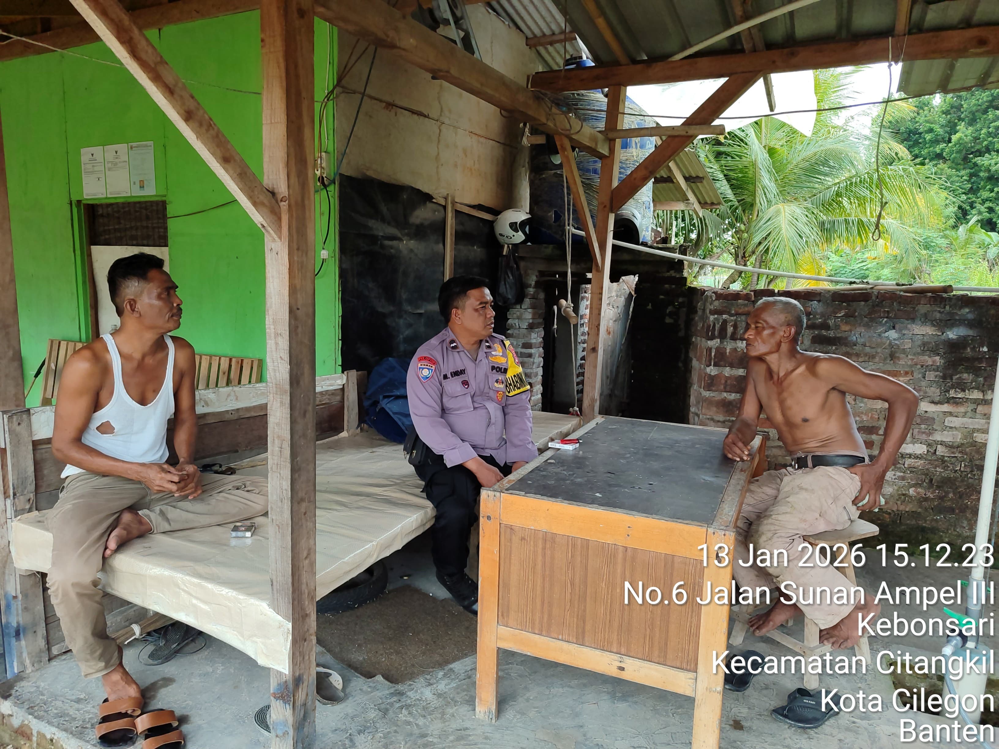 Cilegon - Personil Bhabinkamtibmas Polsek Ciwandan Polres Cilegon Polda Banten Menyampaikan Pesan Kamtibmas dan mengajak masyarakat terus aktif dalam kepedulian terhadap Pemeliharaan keamanan lingkungan di daerah Binaanya, Selasa (13/01/2026).