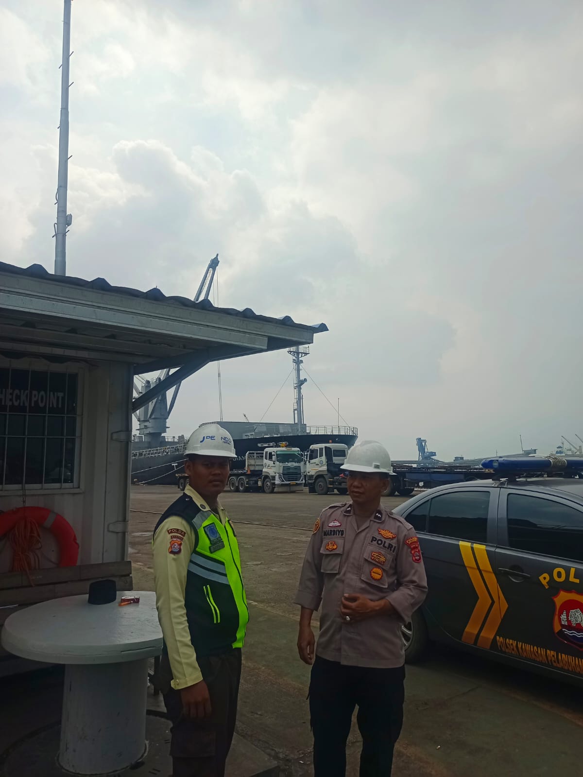 Kapolres Cilegon Polda Banten AKBP Martua Raja Taripar Laut Melalui Kapolsek Kskp Banten Polres Cilegon Polda Banten AKP Fredo Leonard Mengatakan Personil Polsek Kskp Banten Rutin menyambangi anggota Security dan memberikan himbauan agar para anggota Security bisa melaksanakan tugas menjaga keamanan di lingkungan Kawasan Pelabuhan.