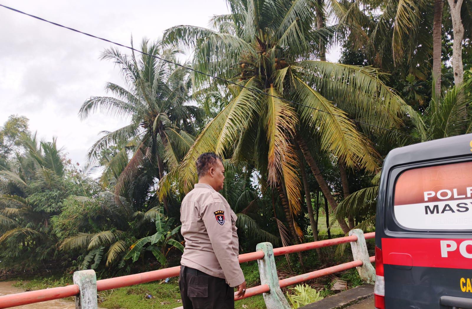 Personel Polsek Anyar Polres Cilegon Polda Banten melaksanakan Patroli kewilayahan mengecek debit air di Sungai pasca Hujan antisipasi banjir di wilayah Kec. Anyar, Rabu (14/01).