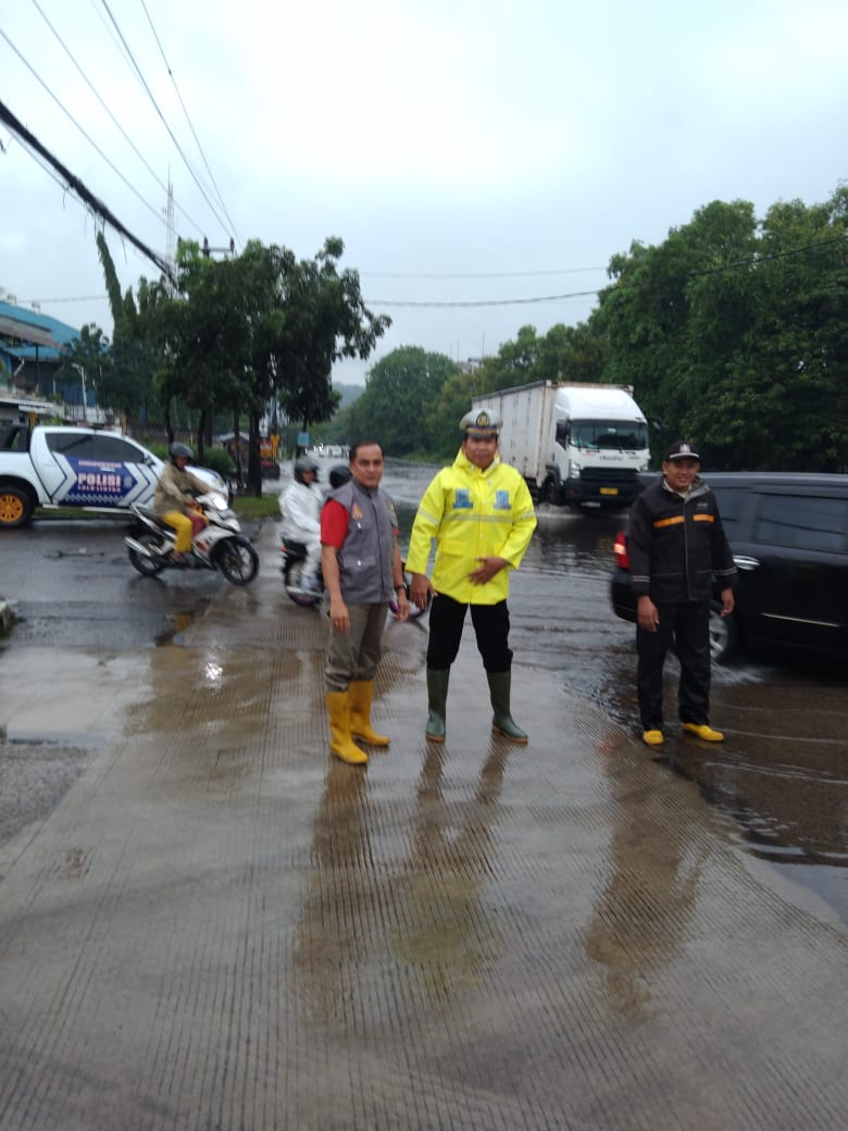 Cilegon - Personil Polsek Ciwandan melaksanakan monitoring genangan air dampak cuaca hujan lebat di wilayah hukum Polsek Ciwandan, Rabu (14/01/2026).