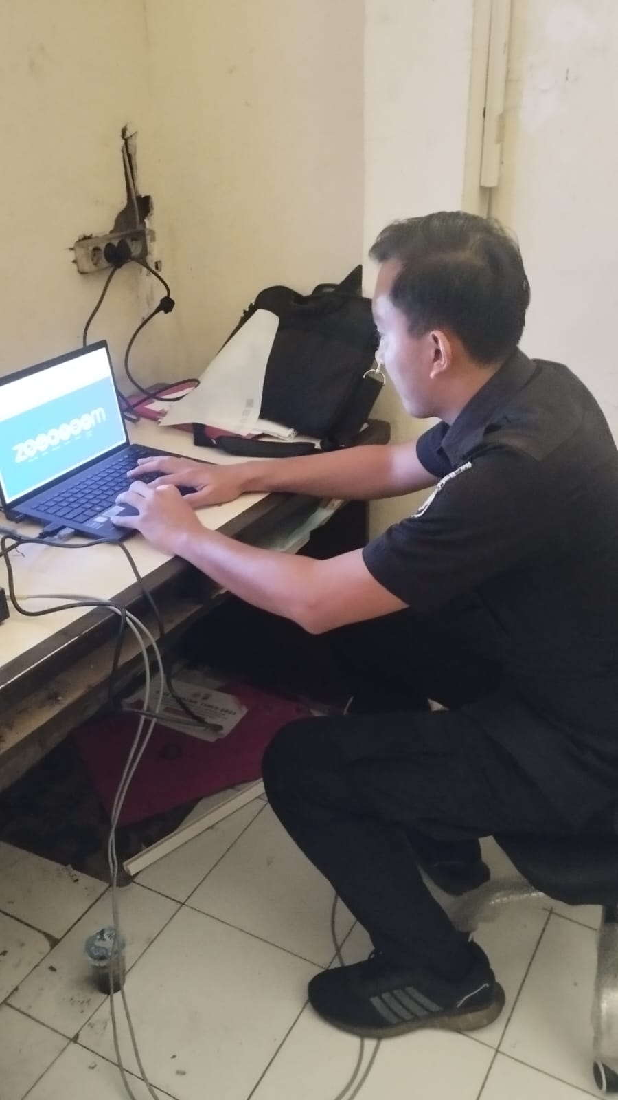 Anggota Tik Polres Cilegon Menyiapkan Sarana dan Prasarana Untuk Kegiatan Zoom meeting Dalam pelaksanaan kegiatan zoom meeting tersebut anggota TIK Polres Cilegon yang bertanggung jawab untuk menyiapkan peralatan zoom. Selain itu agar di tidak ada gangguan jaringan sebelum pelaksanaan anggota TIK melakukan pemeriksaan terhadap sarana dan prasarana tersebut . Satu jam sebelum kegiatan zoom meeting itu dimulai. Kapolres Cilegon AKBP. DR. MARTUA RAJA TARIPAR LAUT SILITONGA. melalui Kasi TIK AIPTU Suwanto, S.H. menyampaikan bahwa “untuk menunjang kelancaran penyampaian informasi anggota TIk Polres Cilegon selalu memeriksa sarana dan prasarana tersebut, sebelum maupun pada saat pelaksanaan akan selalu di monitor”