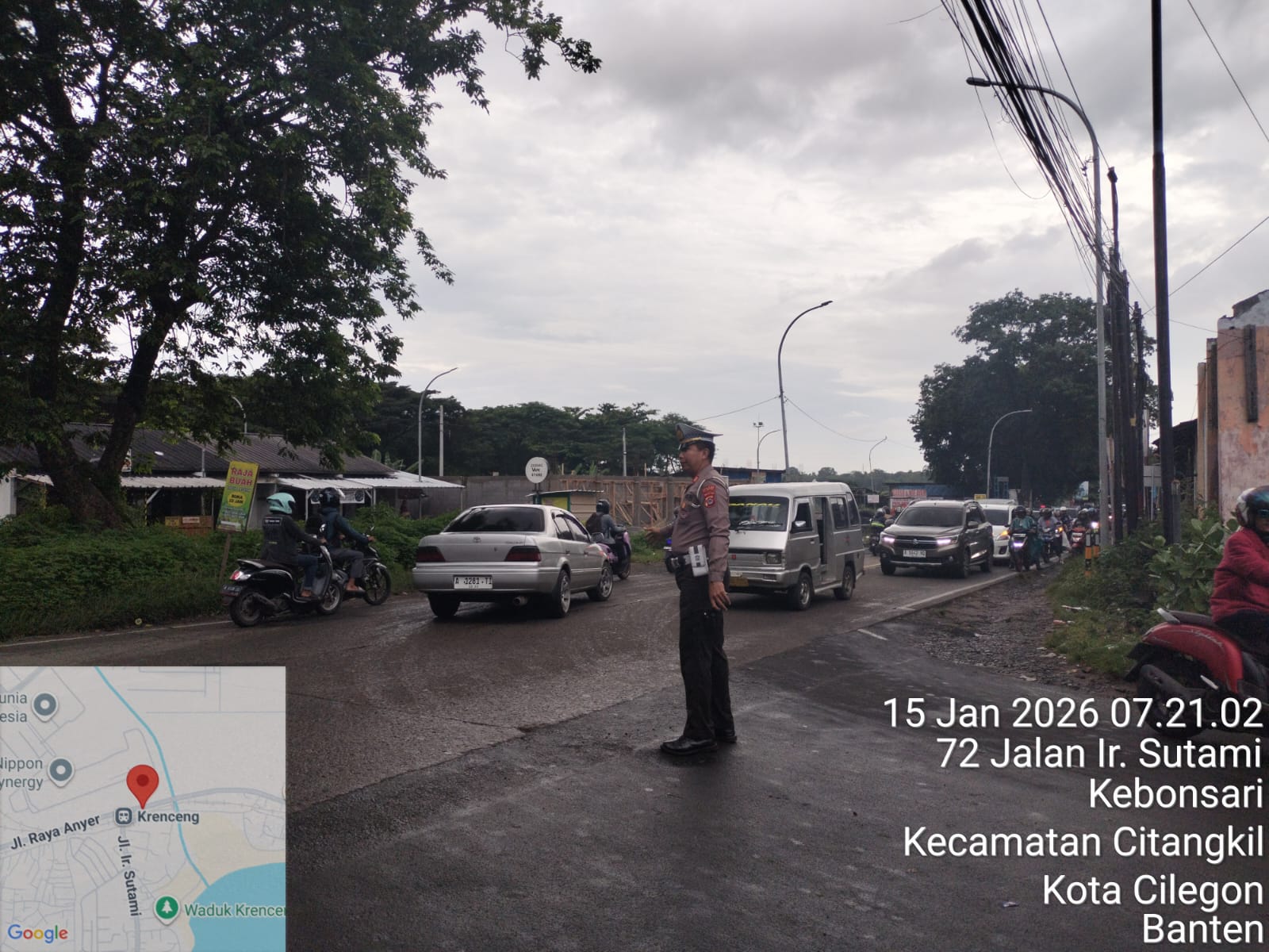 Cilegon – Berikan Pelayanan Kepada Masyarakat Personil Polsek Ciwandan Polres Cilegon Polda Banten melaksanakan pengaturan di titik kepadatan Arus Lalu-lintas Yang Ada Di daerah Hukum Polsek Ciwandan, Kamis (15/01/2026).