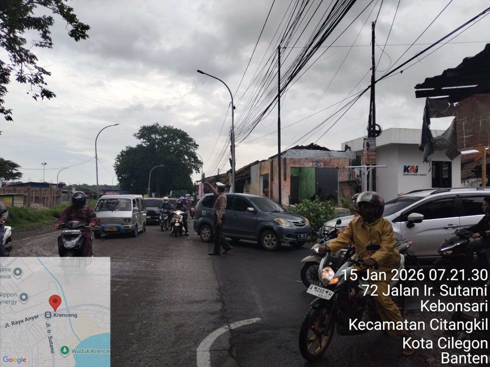 Cilegon – Berikan Pelayanan Kepada Masyarakat Personil Polsek Ciwandan Polres Cilegon Polda Banten melaksanakan pengaturan di titik kepadatan Arus Lalu-lintas Yang Ada Di daerah Hukum Polsek Ciwandan, Kamis (15/01/2026).