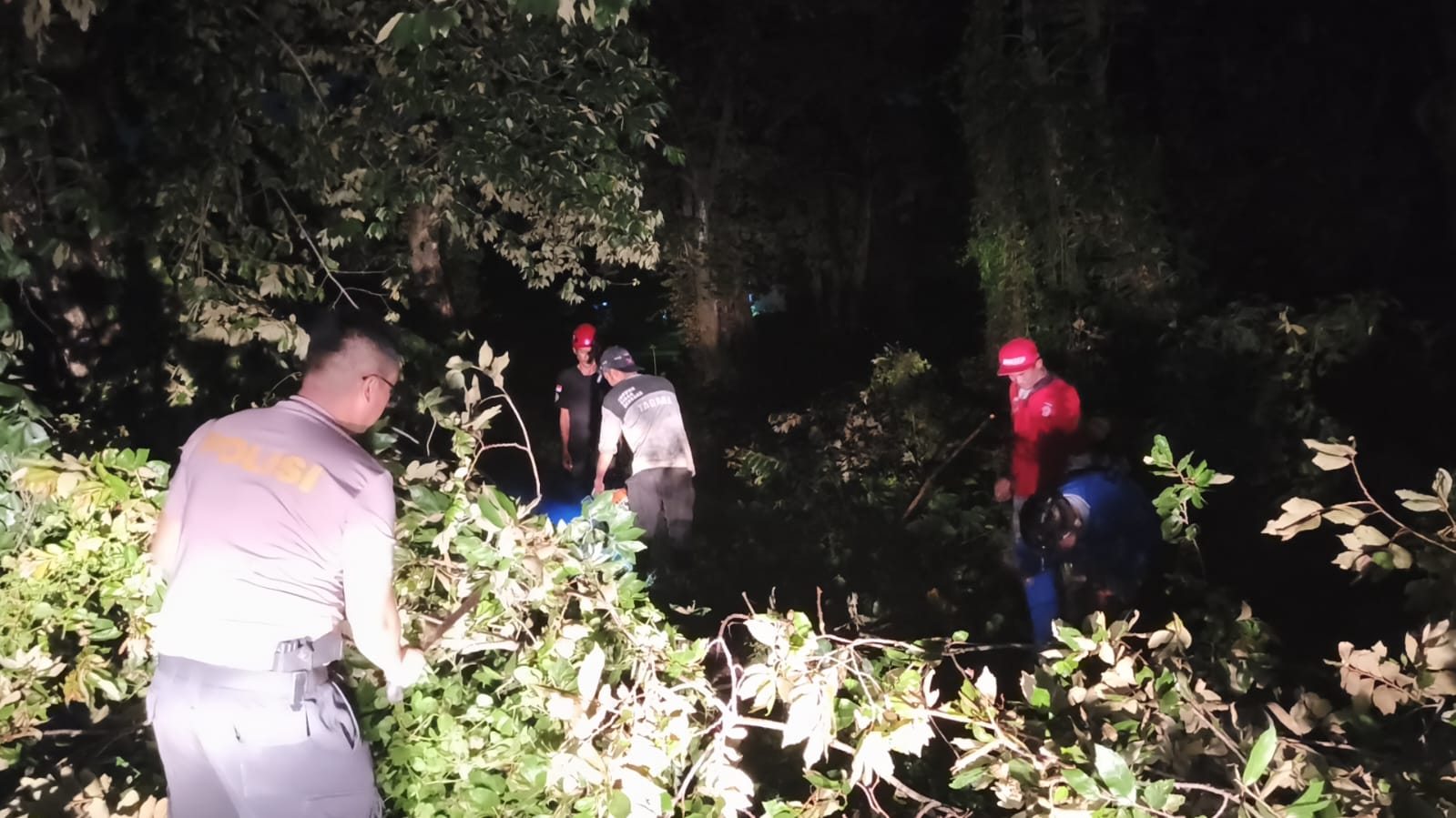 Pohon tumbang lain juga menutupi jalan pemukiman sekitar 20 meter dari rumah Sdri. IIN. Petugas berhasil membersihkan area tersebut, situasi aman dan tertib.