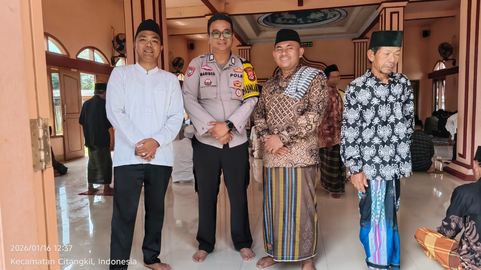 Menindaklanjuti Program Kapolda Banten Bhabinkamtibmas Polsek Ciwandan Polres cilegon Polda Banten berusaha menyempatkan diri untuk bersilaturahmi dengan masyarakat,di samping itu juga sebagai sarana kegiatan dalam memakmurkan Masjid dengan menunaikan ibadah Sholat berjama’ah bersama, ungkapnya.