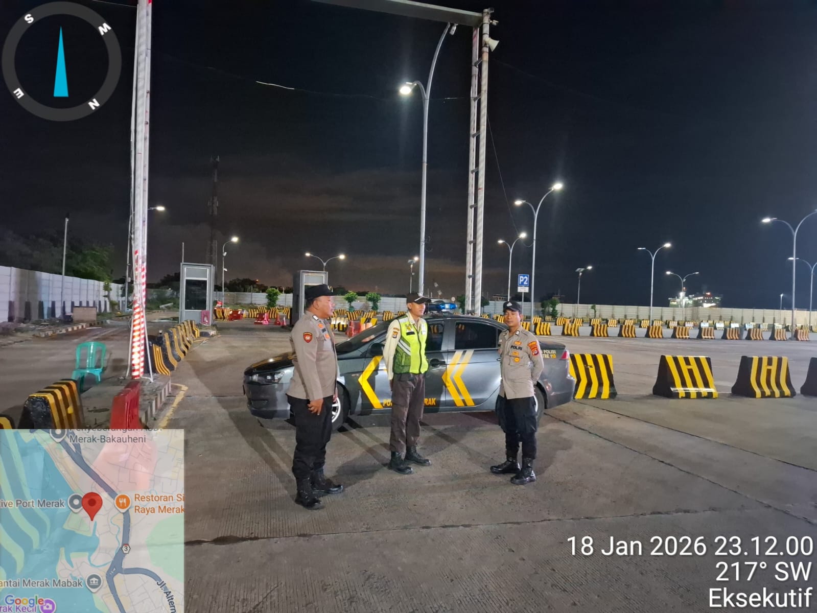 Cilegon - Personil Polsek Kskp Merak Polres Cilegon melaksanakan patroli di kawasan pelabuhan merak memberikan rasa aman dan damai, Senin (19/01/2026)