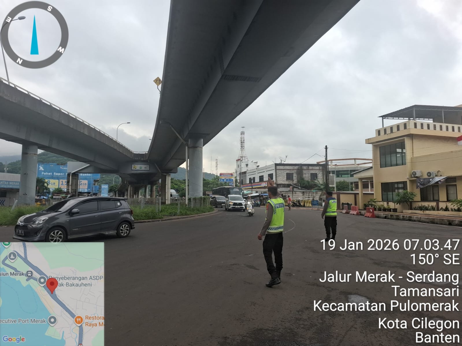 Cilegon - Dalam rangka peningkatan pelayanan prima kepada masyarakat, Kskp Merak Polres Cilegon Polda Banten melaksanakan pengaturan antrian R4 yang akan masuk ke Kapal Ferry di Pelabuhan Merak, Senin (19/01/2026).