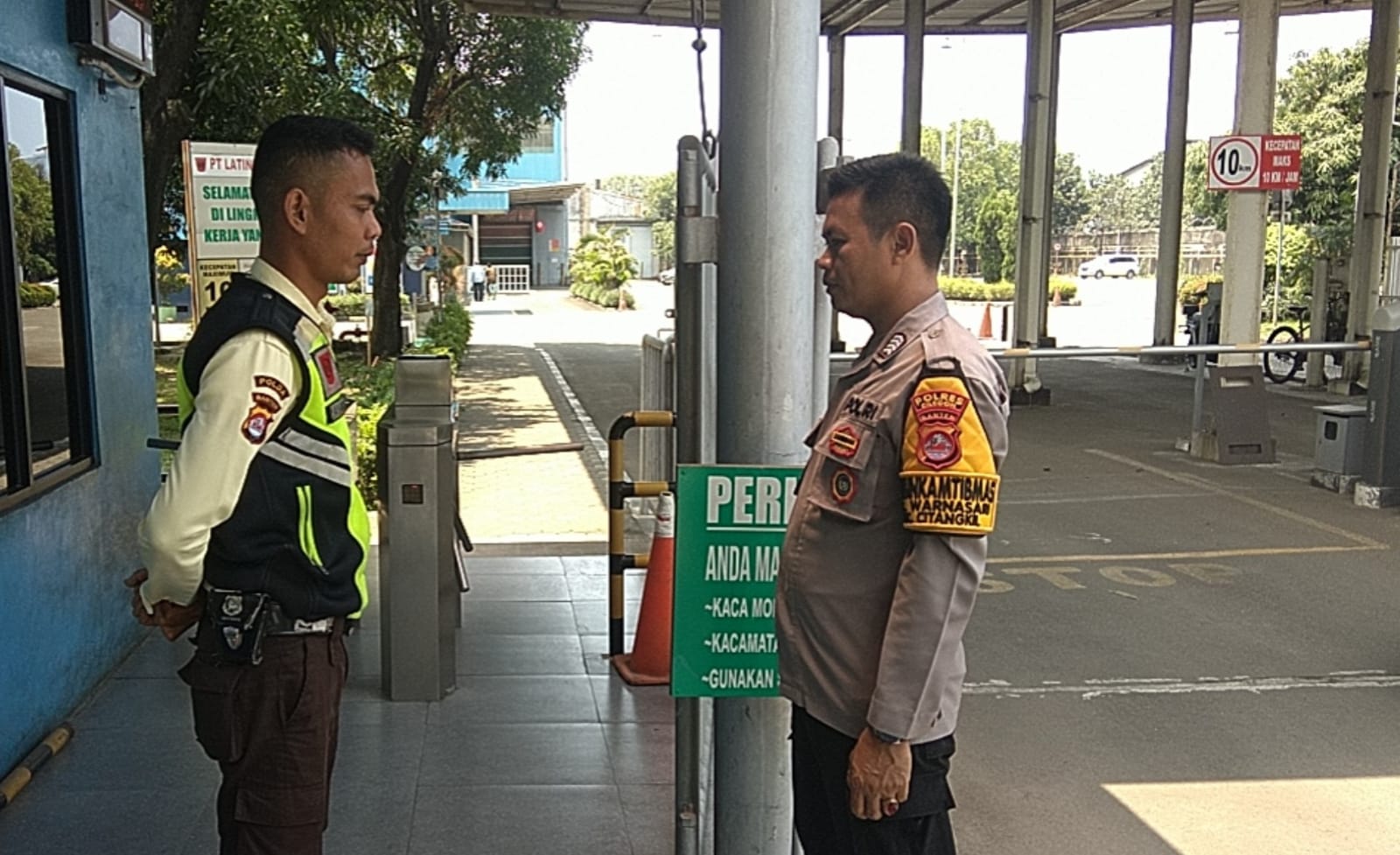 Bhabinkamtibmas polsek ciwandan menyambangi security/satpam perusahaan tersebut untuk berinteraksi dengan petugas keamanan yang bertugas. Ia berdiskusi dengan para satpam tentang situasi keamanan di sekitar perusahaan, berbagi informasi tentang potensi ancaman kejahatan, serta memberikan nasihat dan arahan terkait tindakan pencegahan dan keamanan yang dapat diambil.