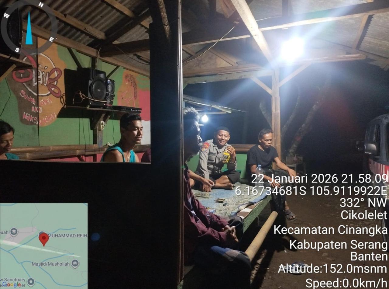 *Polres Cilegon* || Personil Bhabinkamtibmas Polsek Cinangka melaksanakan Program Komandan Wish Kapolda Banten RONDA SATKAMLING menyampaikan komunikasi dengan Petugas Siskamling agar berperan aktif dalam menciptakan Harkamtibmas yang aman dan Kondusif, Jumat (23/01/2026).
