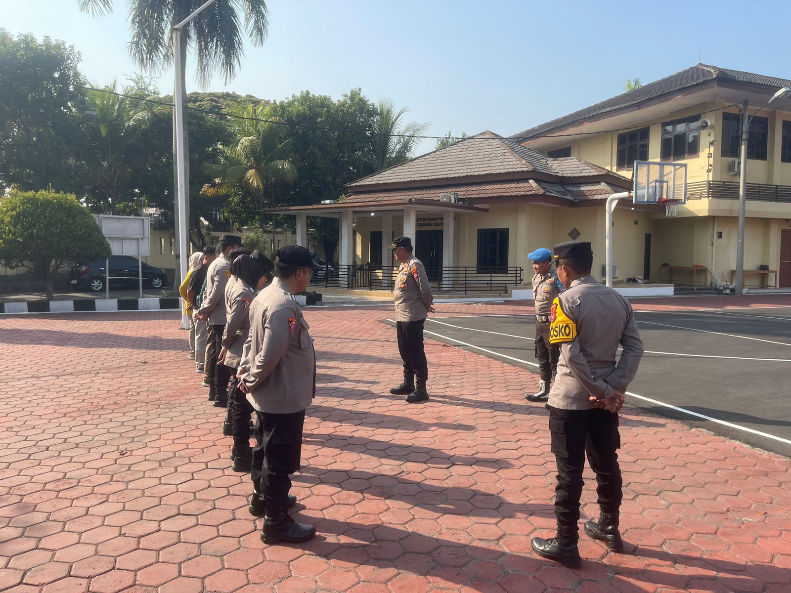 Anggota sium Polres Cilegon , tapil dalam Pellaksanaan rangka, kegiatan Apel ton Kerangka. Cilegon - Polres Cilegon Polda Banten - sium Polres Cilegon melaksanakan Apel Kerangka di Lapangan Apel Satya Haprabu Polres Cilegon Guna menunjukan kesiap siagaan pelayanan kepada masyarakat, sabtu (8/2/2026) Pukul 08.00 Wib. Kabag SDM Polres Cilegon selalu mengingatkan “Apel kerangka Penting untuk di laksanakan sebagai bentuk ke siap siagaan kita untuk hadir di tengah tengah masyarakat untuk melayani masyarakat sebagai mana tugas pokok Anggota Polri agar tericiptanya Harkamtibnas khususnya di Wilayah Kota Cilegon."Ujarnya Kegiatan ini sudah termasuk rutinatas personel Polres Cilegon menyadari kerawanan kejadian di akhir pekan kami selalu memberikan himbauan ke pada masyarakat untuk selalu hati hati dan waspada dalam menjalankan aktivitas di akhir pekan. Selain dari pada itu anggota yang terlibat apel tersebut melakukan pengaman di tempat ibadah guna kelancara dan ke amanan acara ibadah tersebut."Tutupnya (BL)