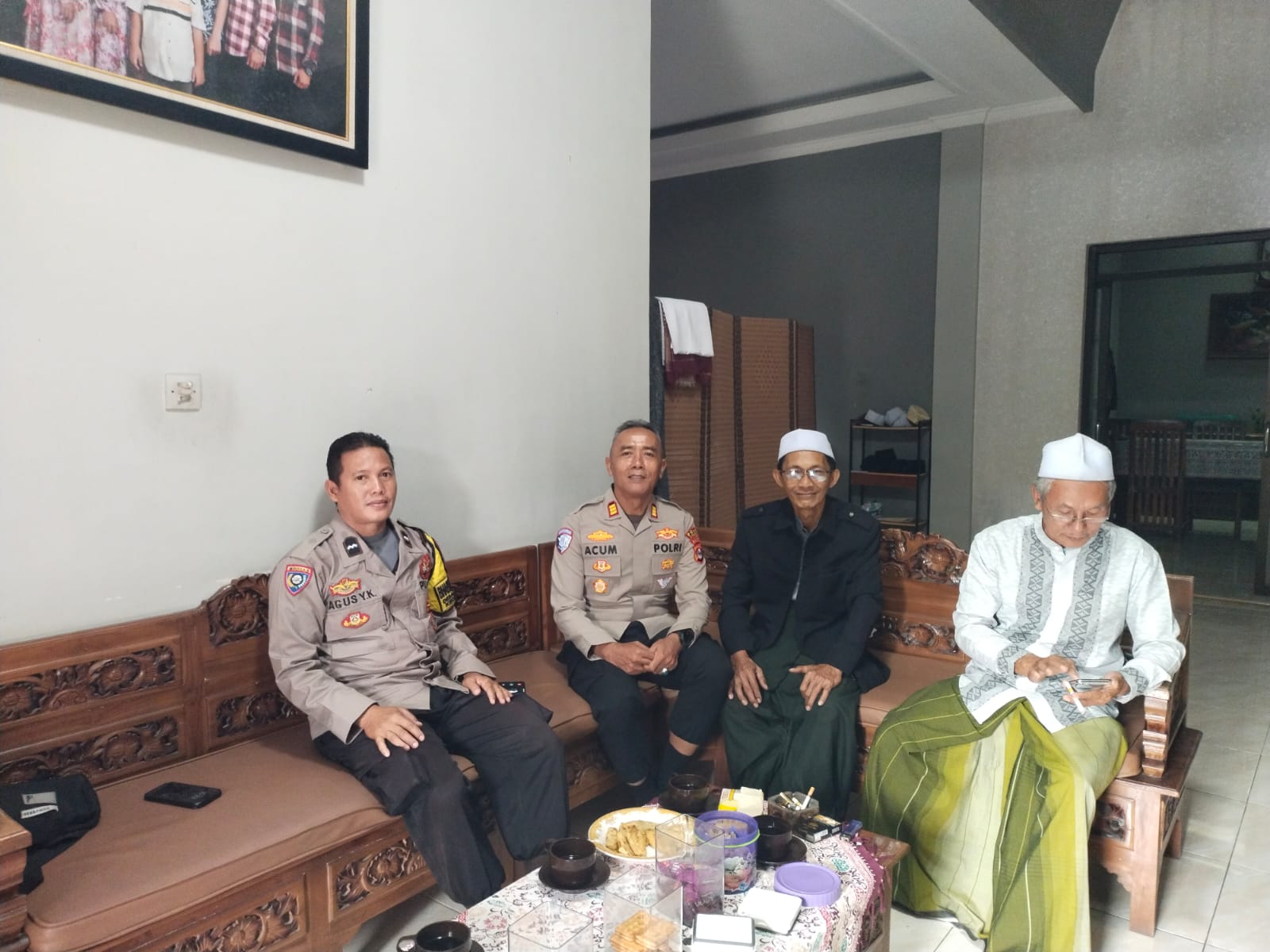 Kapolres Cilegon Polda Banten AKBP Dr. Martua Raja Taripar Laut Silitonga melalui Kapolsek Mancak  AKP ACUM SUTARLIA Beserta Bhabinkamtibmas AIPDA AGUS YEYEN K, BRIGADIR  YOGA SAPUTRA, Melaksanakan Kegiatan  Sambang dan Dialogis Kepada tokoh masyarakat. Memperkenalkan diri Kapolsek baru dan mohon bimbingannya dan arahan kepada H.lili ketua FSPP (Forum silaturahmi pondok pesantren) selaku tokoh tokoh yang dituakan dan bersama sama menjaga Kamtibmas diwilayah hukum Polsek mancak Mengimplementasikan Program Commander Wish Kapolres Cilegon "TRENDING" (Transparan, Responsif, Elektronik, Normatif, Dedikatif, Inovatif, Netral, Good Government)