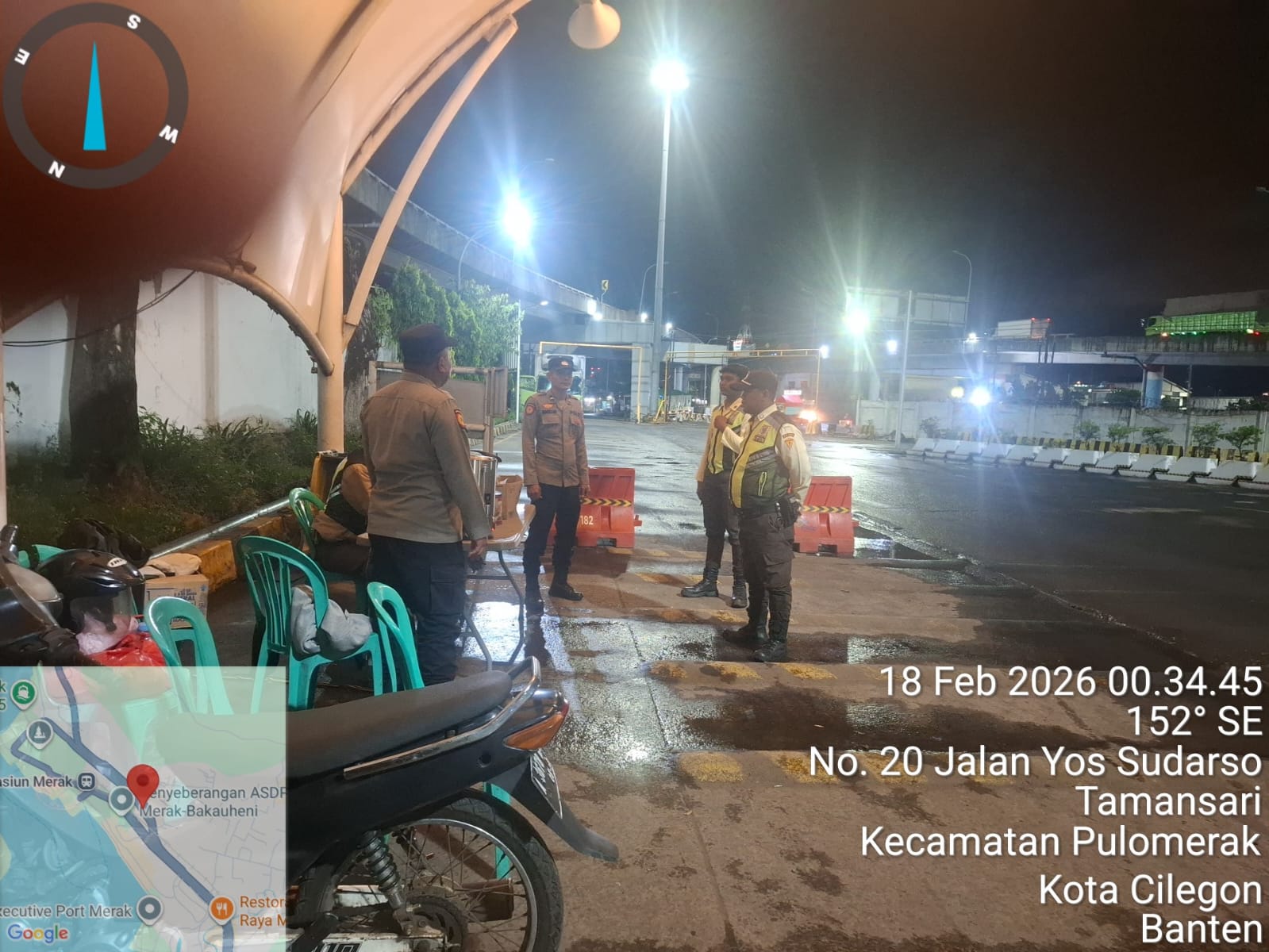 Cilegon - Personil Polsek Kskp Merak Polres Cilegon melaksanakan patroli di kawasan pelabuhan merak memberikan rasa aman dan damai, Rabu (18/02/2026)