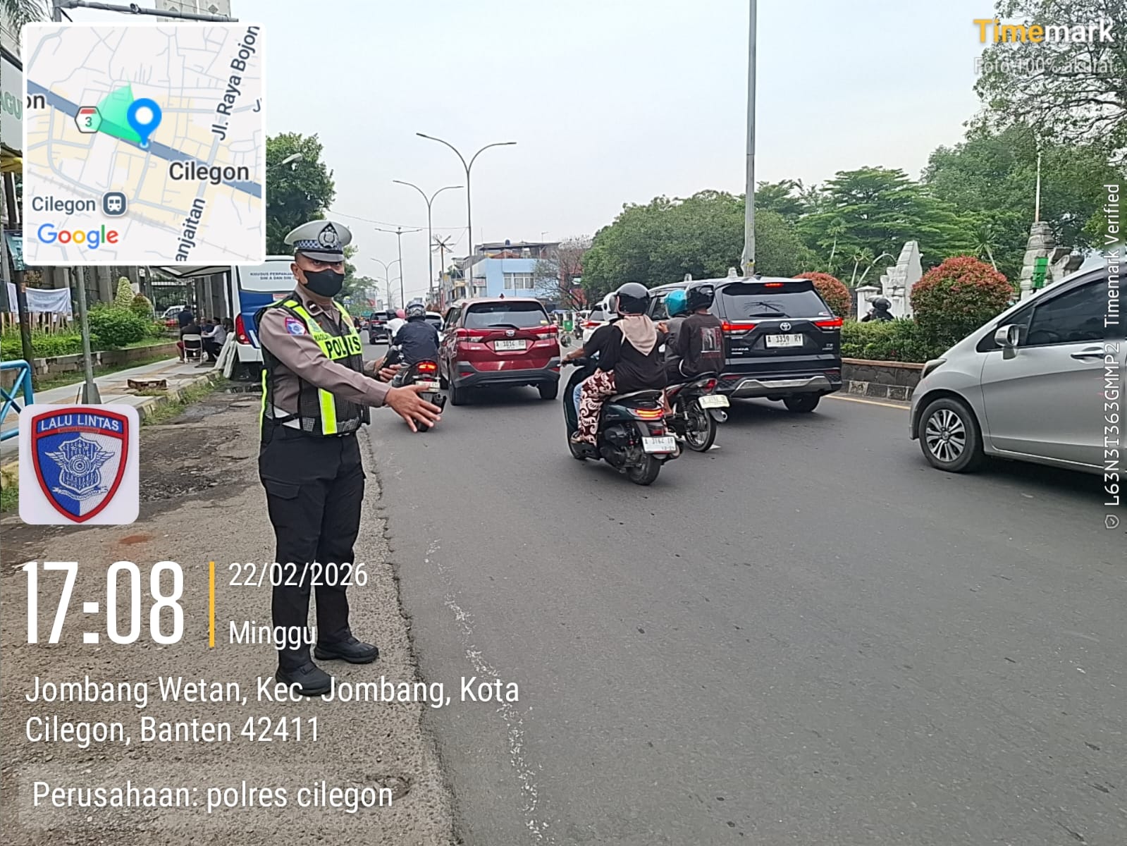 Cilegon – Polres Cilegon Polda Banten, Dalam Mewujudkan Aksi Nyata Pelayanan Kepada Masyarakat, Personil Satlantas Polres Cilegon Polda Banten Laksanakan PECAK (Pergelaran Cepat Anggota Kepolisian) Pengaturan Lalu lintas di wilayah perkotaaan terutama di titik rawan kemacetan dan kecelakaan lalu lintas, Minggu (22/02/2026).