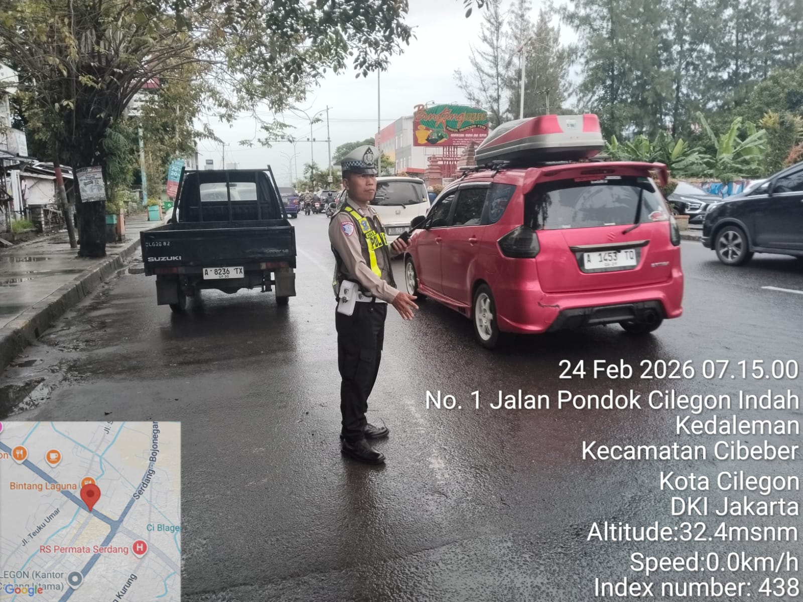Cilegon, Satlantas Polres Cilegon Polda Banten – Berikan pelayanan kepada masyarakat Kasat lantas Polres Cilegon AKP Ridwan memerintahkan jajaran lalulintas untuk melaksanakan pengaturan lalu lintas di penggal – penggal jalan yang rawan kemacetan di Kota Cilegon, (Selasa,24/2/2026)