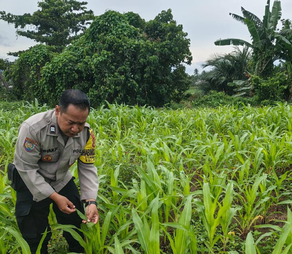 Dalam kegiatan monitoring ini, Bhabinkamtibmas meninjau langsung kondisi lahan jagung.