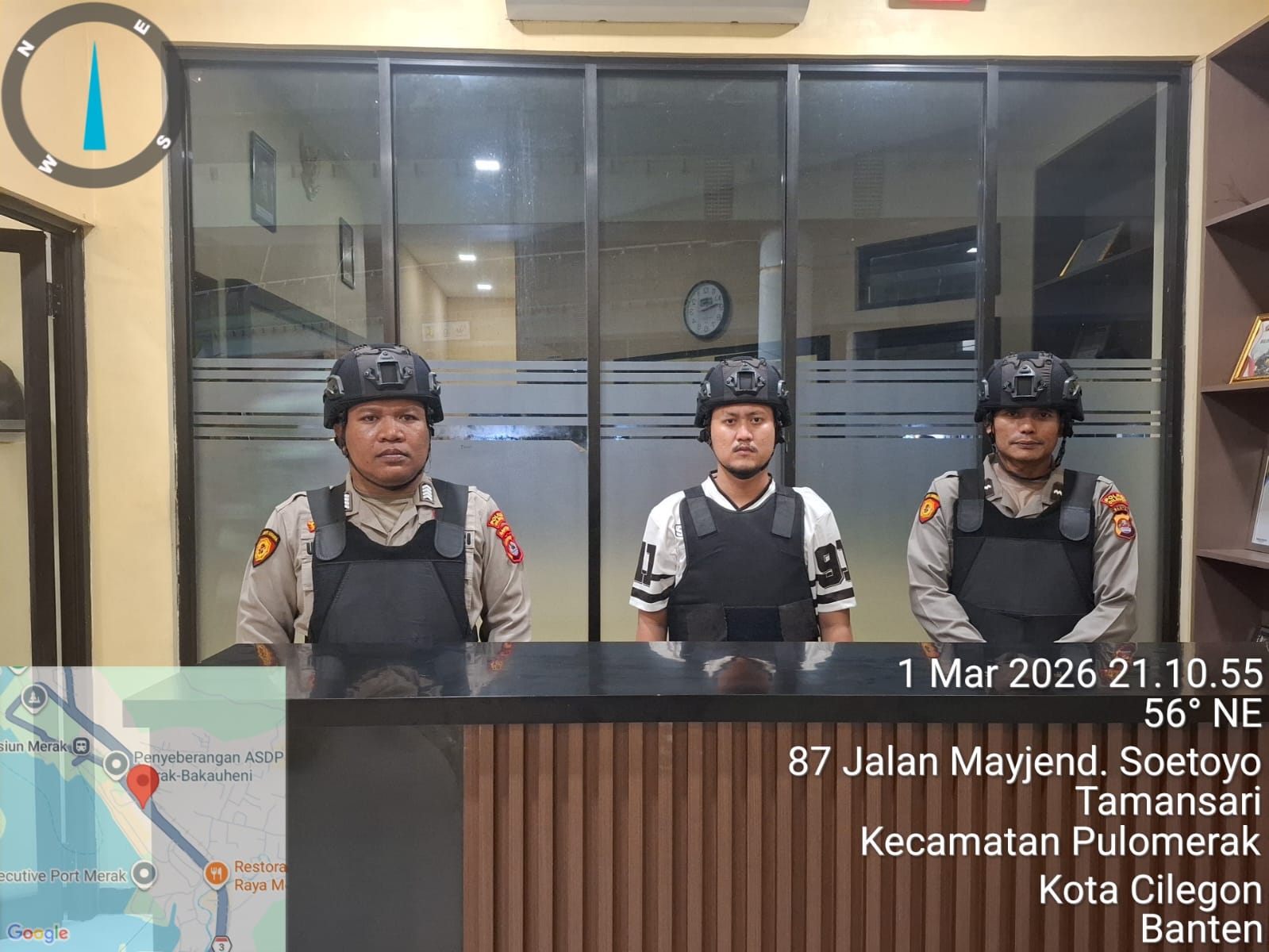 Cilegon - Personel piket jaga Polsek Kskp Merak Polres Cilgon Polda Banten melaksanakan siaga 1 Polsek pelaksanaan Sispam Mako oleh piket siaga dipimpin oleh Kspk Polsek Kskpy Merak Polres Cilegon Polda Banten, Minggu (01/03/2026).
