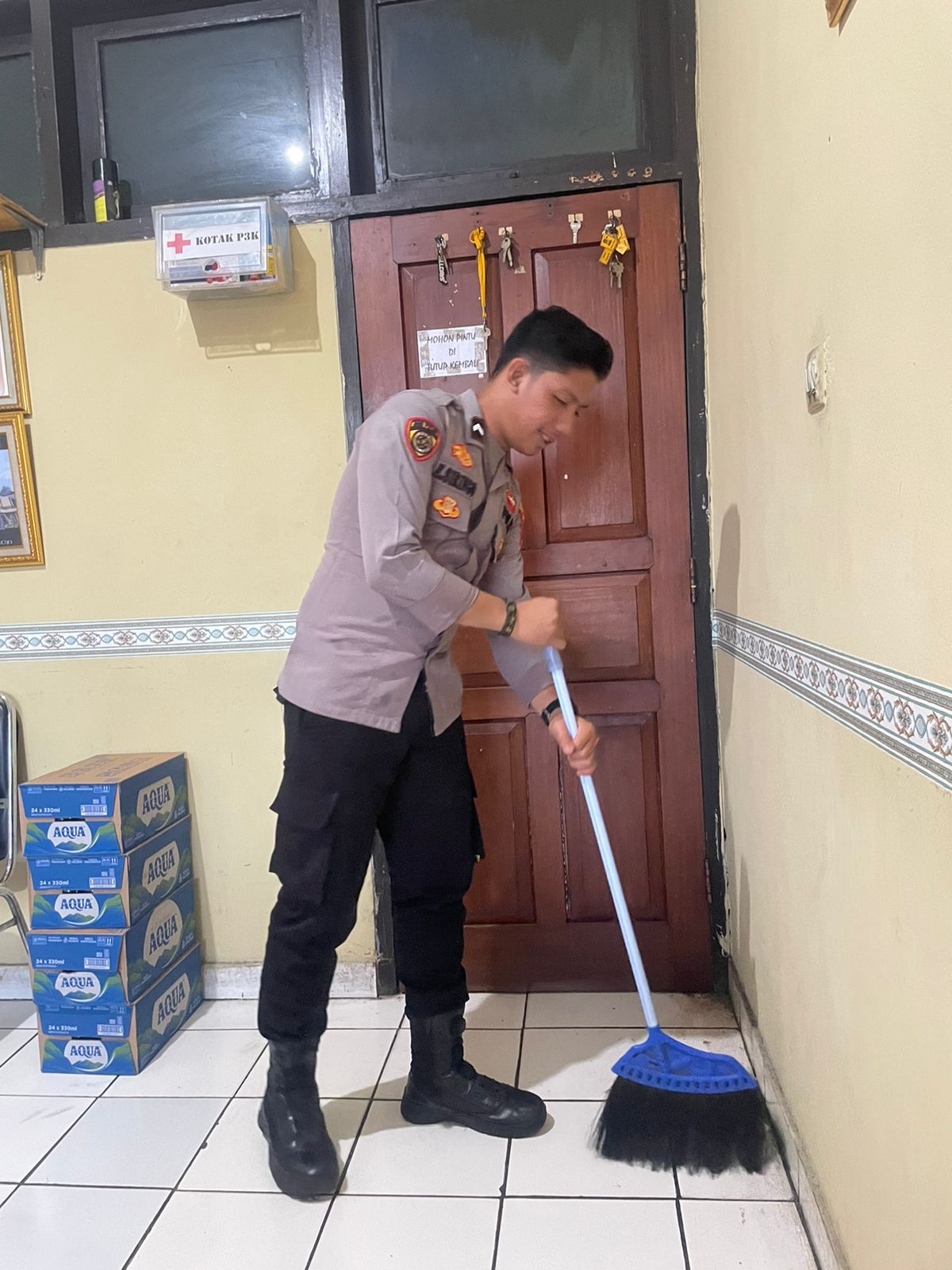Anggota Bag SDM Polres Cilegon, Pelaaksaan kegiatan memmbersihkan ruangan kerja secara rutin.
