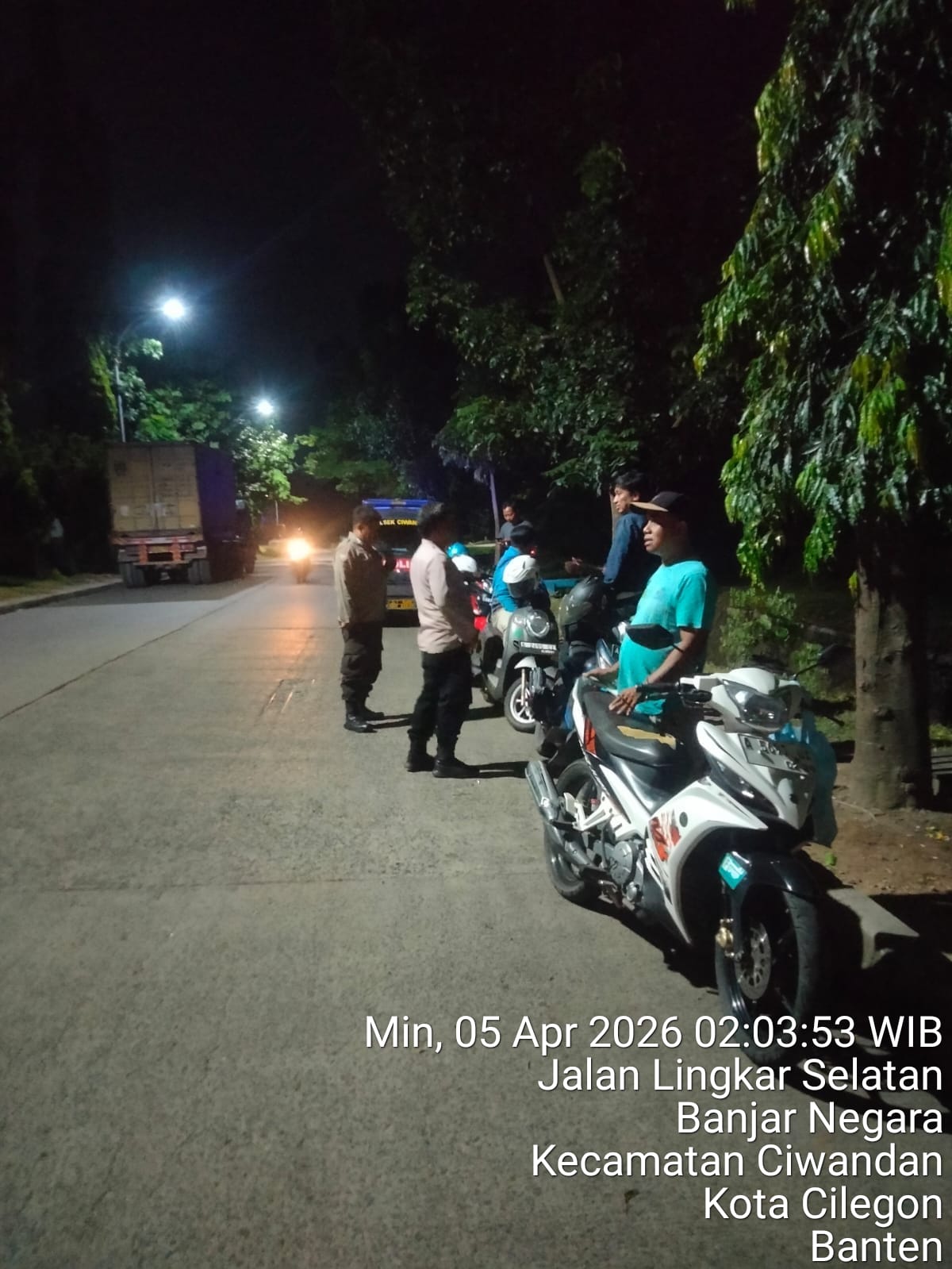 Cilegon - Polsek Ciwandan Polres Cilegon kembali menunjukkan komitmennya dalam menjaga keamanan dan ketertiban di wilayah hukumnya Polsek Ciwandan melaksanakan Patroli dalam rangka antisipasi gangguan kamtibmas, C3, perkelahian remaja, perang sarung, kejahatan malam, balap liar, dan geng motor, Minggu (05/04/2026).