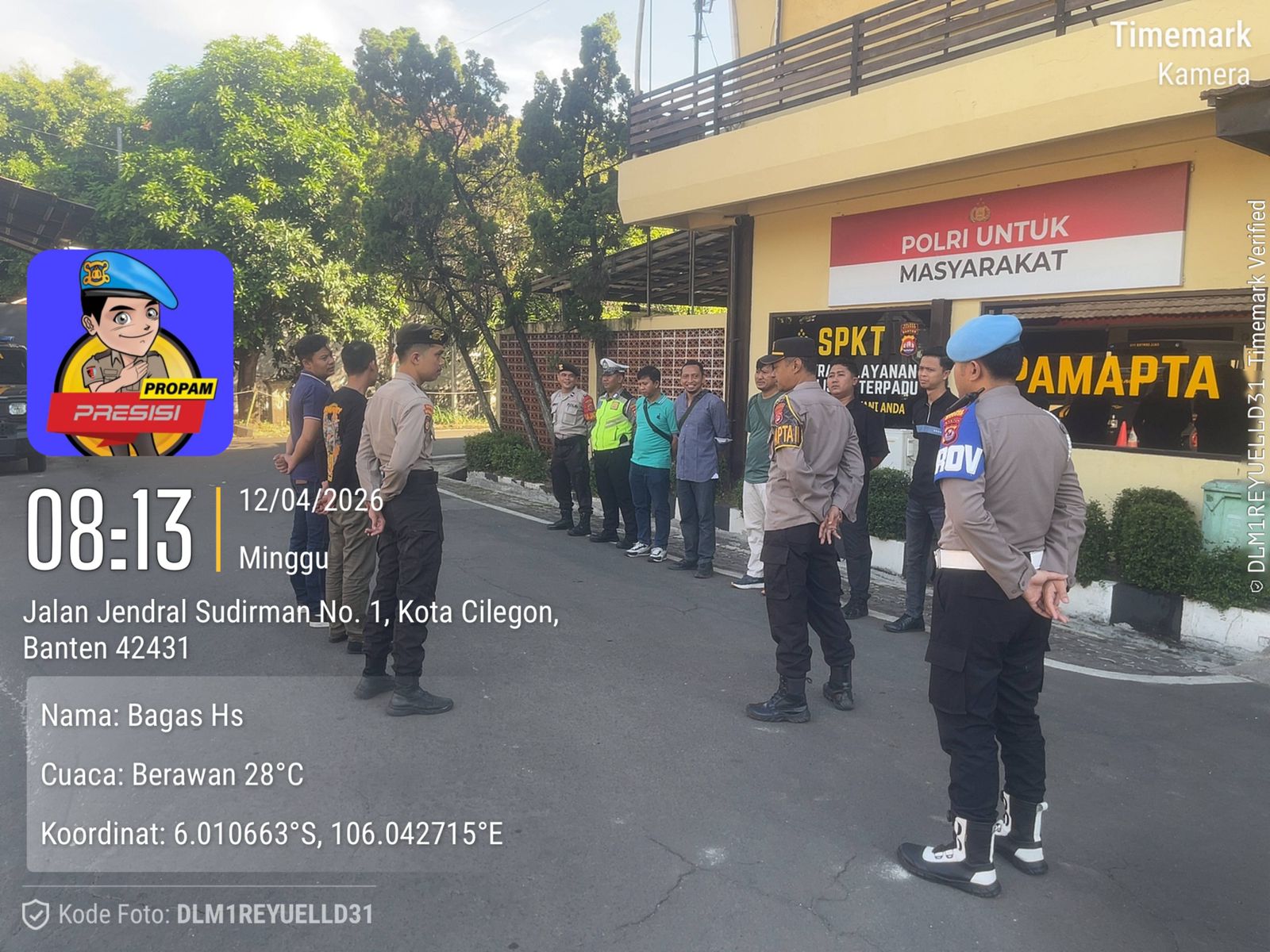 Cilegon, personel Satreskrim Polres Cilegon Polda Banten melaksanakan piket di penjagaan pintu masuk Polres Cilegon Polda Banten untuk memastikan mako Polres Cilegon dalam keadaan aman dan nyaman dalam melayani Masyarakat. minggu (13/04/2026).