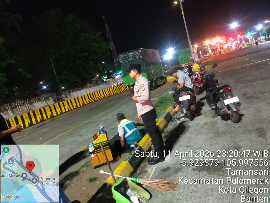 Cilegon - Personil Polsek Kskp Merak Polres Cilegon melaksanakan patroli di kawasan pelabuhan merak memberikan rasa aman dan damai, Minggu (12/04/2026)